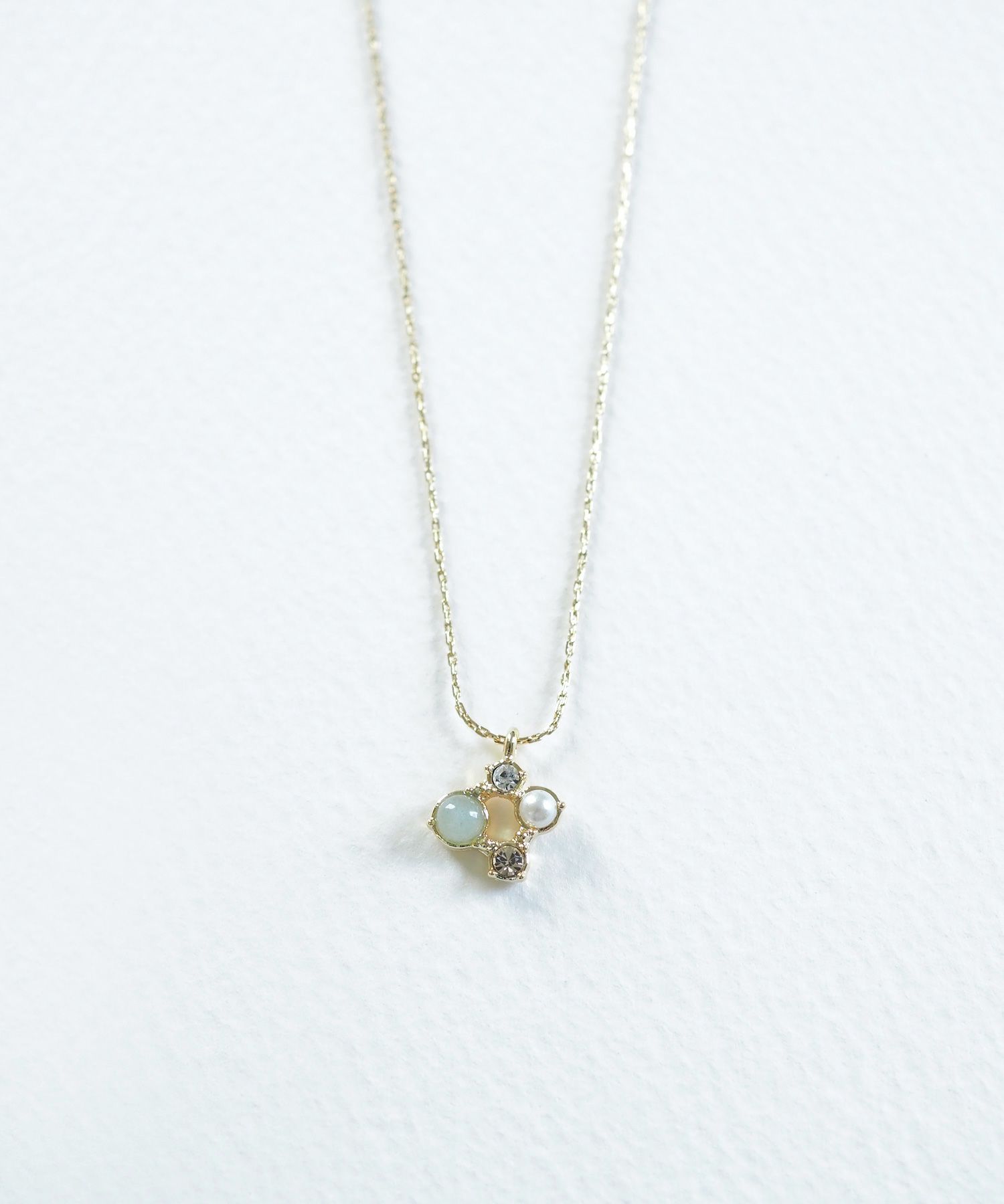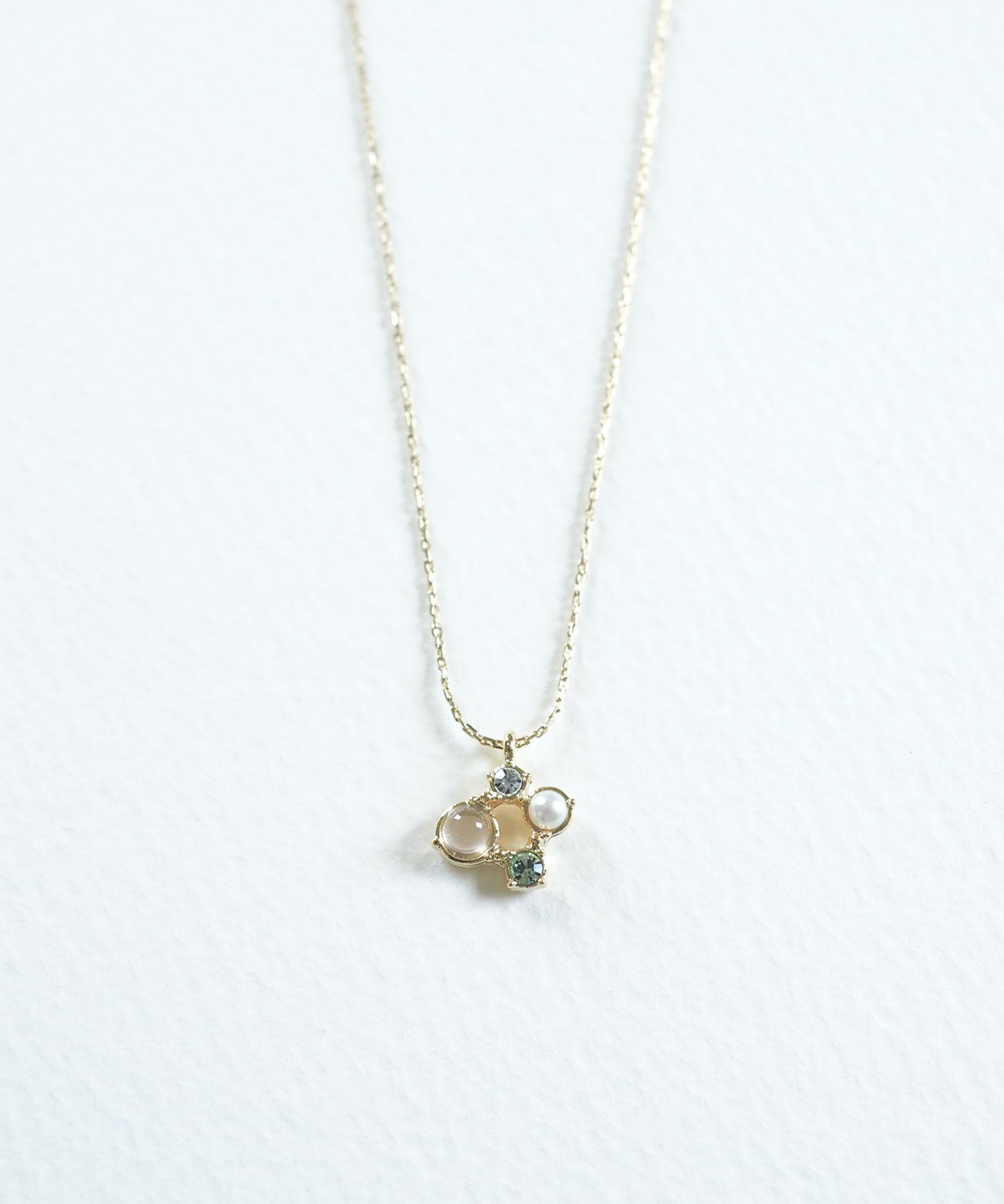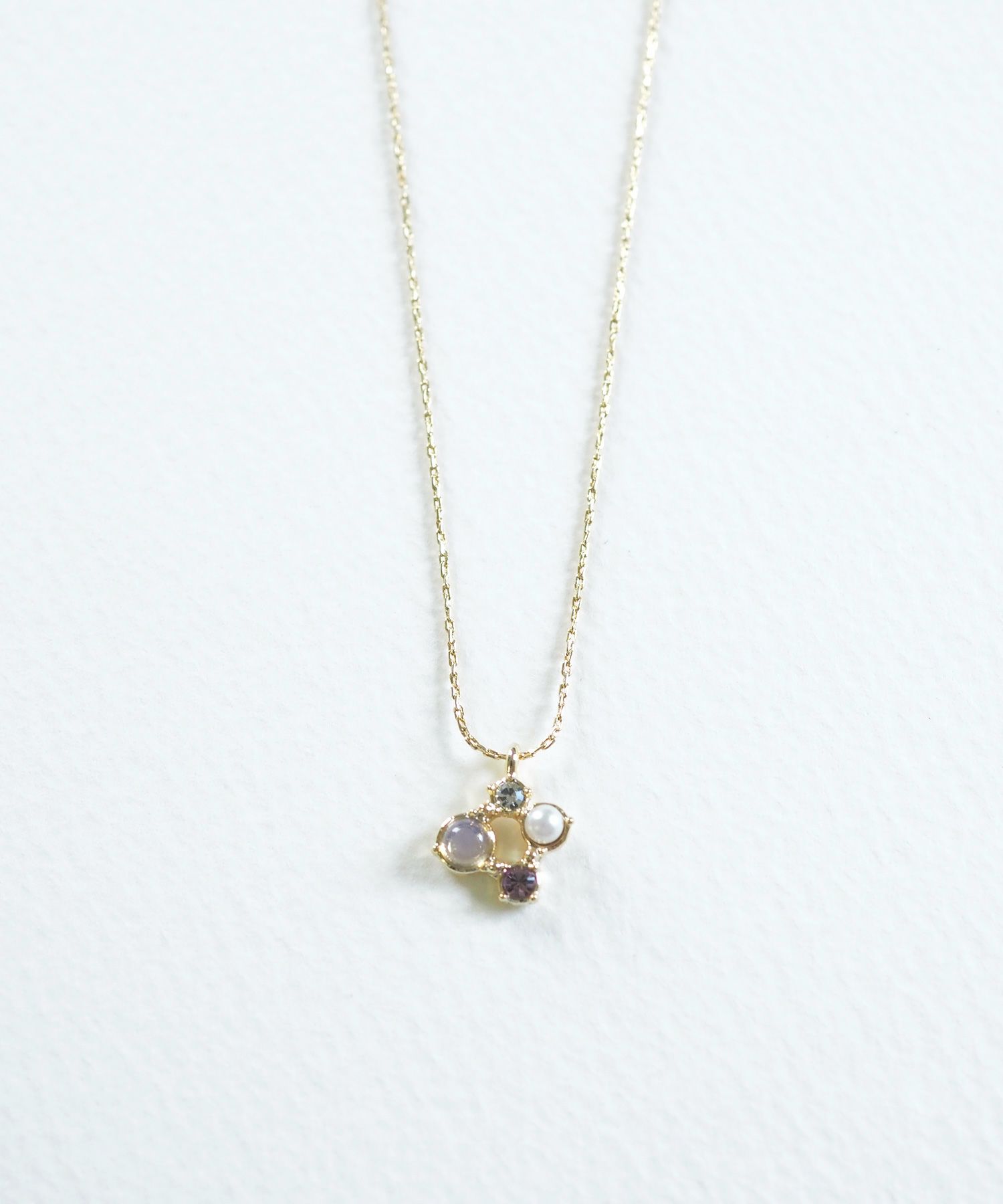天然石の持つ運気を纏う、お守りアクセサリーシリーズ“MUK Dreamy stone”。優しい色合いの天然石、パール、ストーンがあしらわれた上品なデザイン。チェーンの繊細な輝きがデコルテを美しく見せ、女性らしさを引き立てます。プレゼント用にもおすすめです。