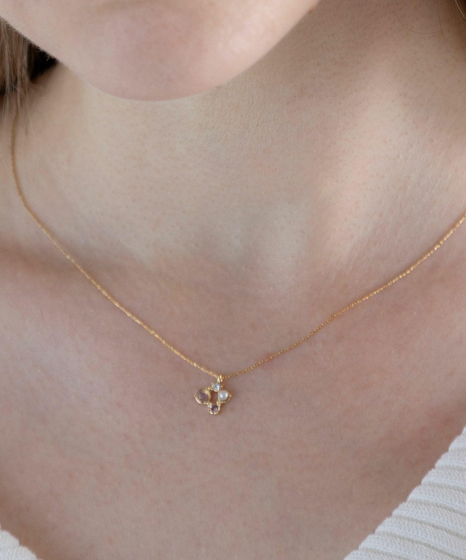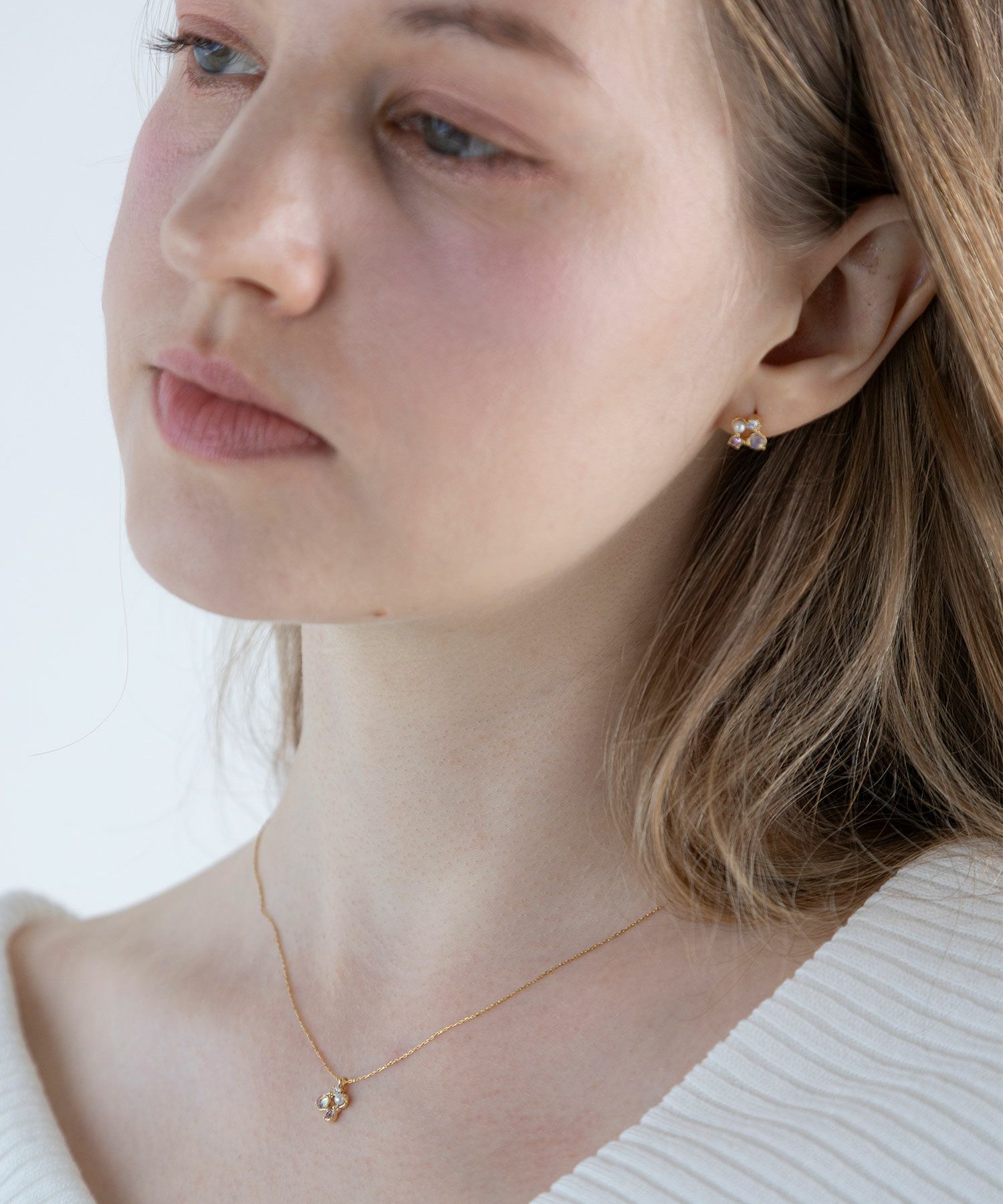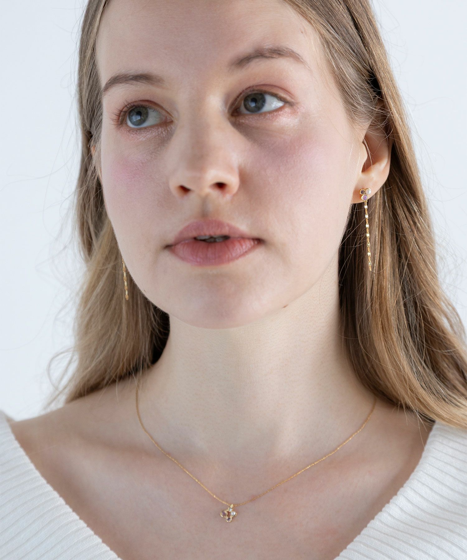 天然石の持つ運気を纏う、お守りアクセサリーシリーズ“MUK Dreamy stone”。優しい色合いの天然石、パール、ストーンがあしらわれた上品なデザイン。チェーンの繊細な輝きがデコルテを美しく見せ、女性らしさを引き立てます。プレゼント用にもおすすめです。
