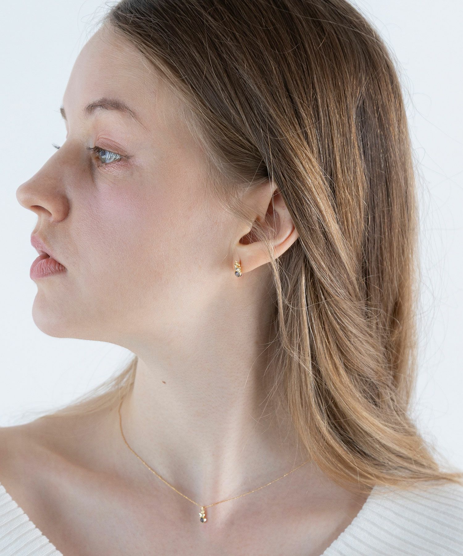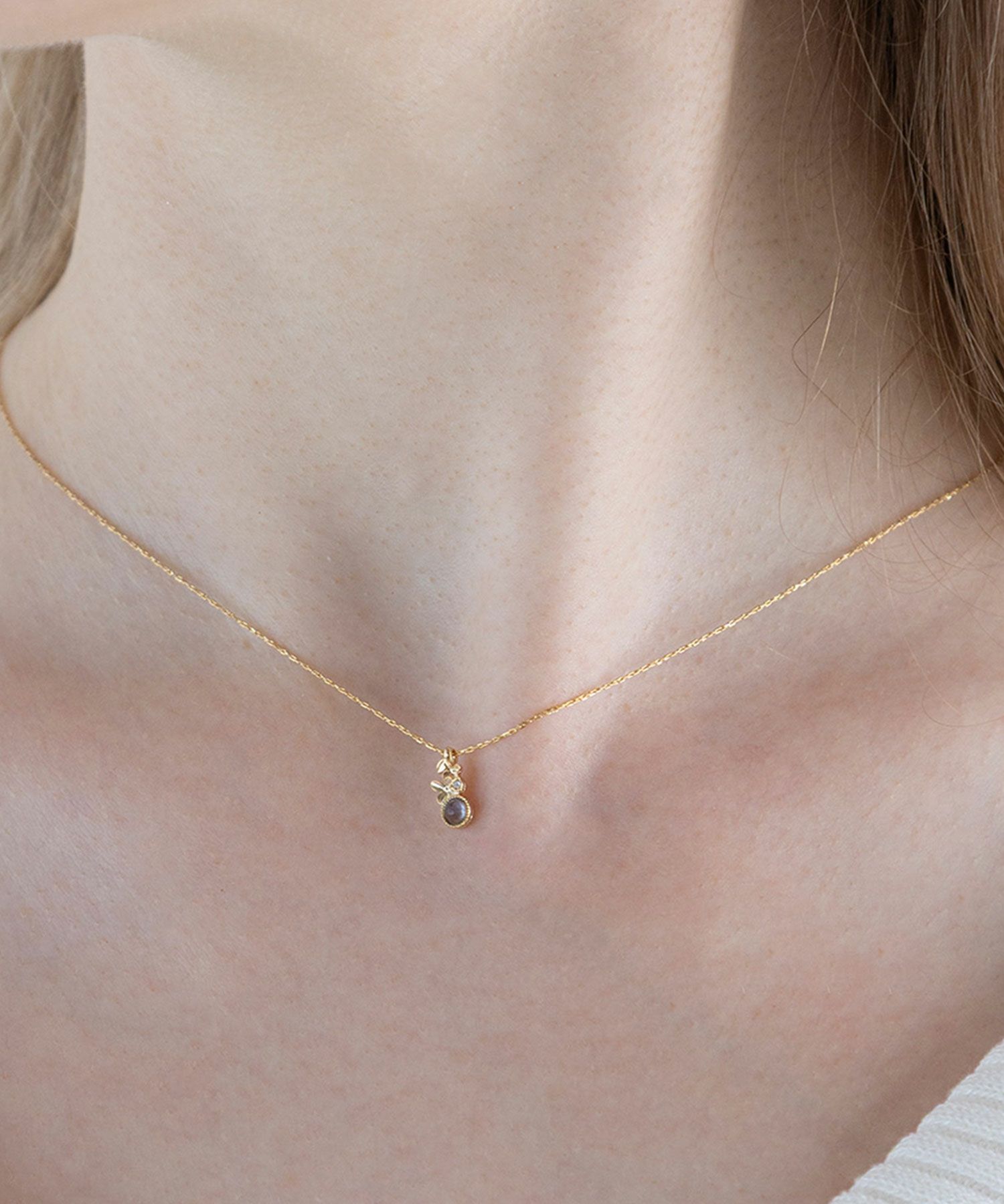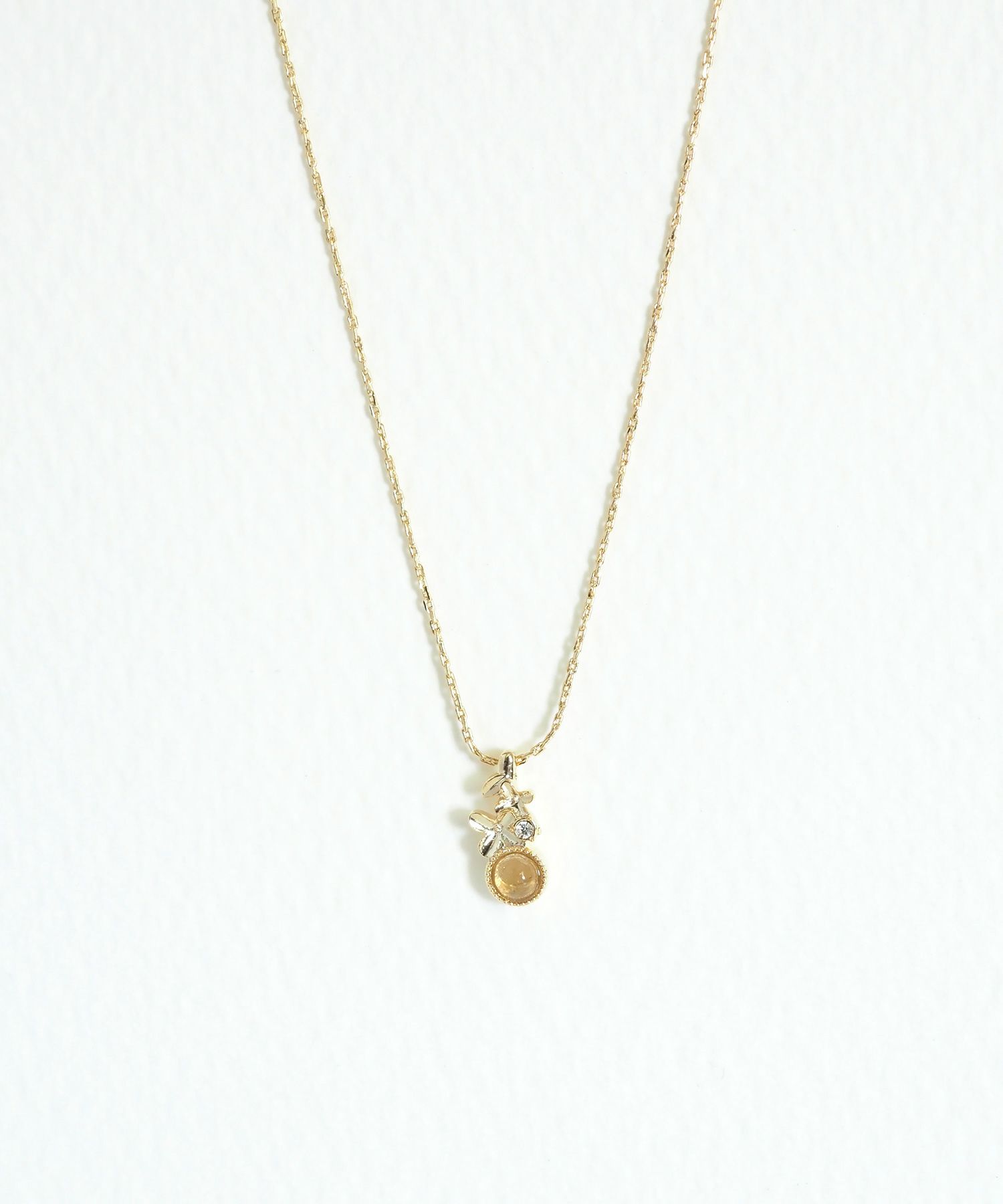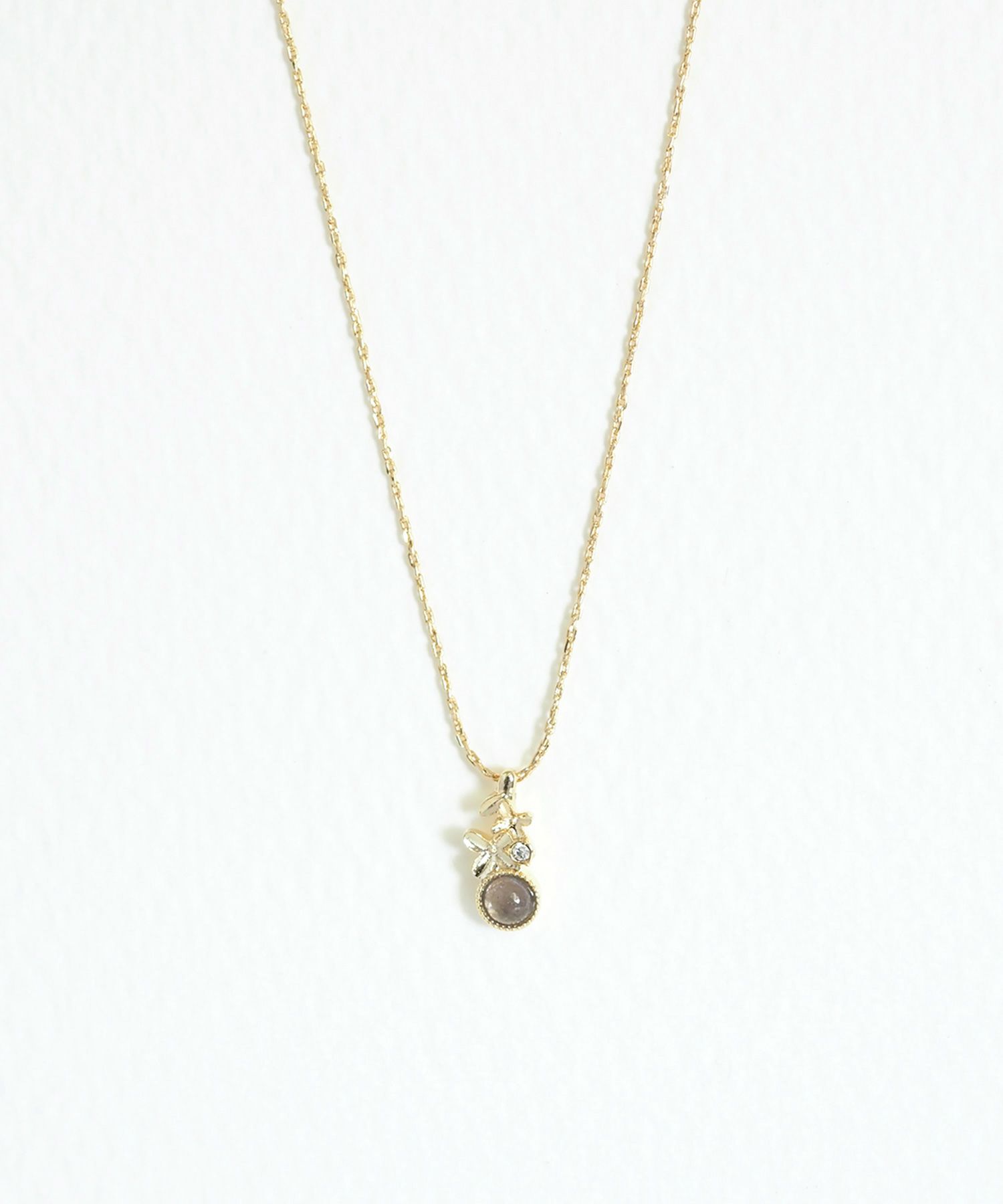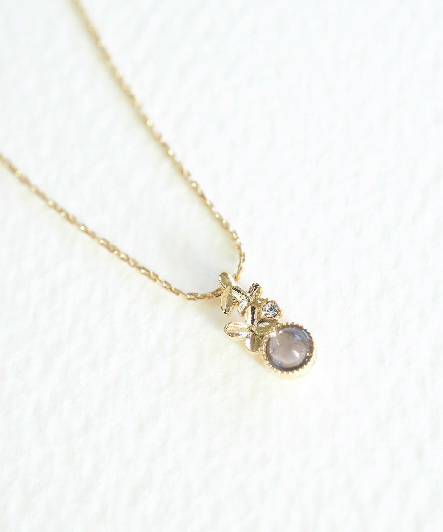 まん丸天然石にそっと舞い落ちる、儚く可憐な金木犀の花をモチーフにしたネックレスです。 ナチュラルカラーの天然石は小ぶりなサイズで肌なじみも良く、シーンを選ばず身に着けやすいのもポイント。フェミニンな装いはもちろん、カジュアルやベーシックなスタイルにもさりげなく女性らしさをプラスしてくれるアイテムです。