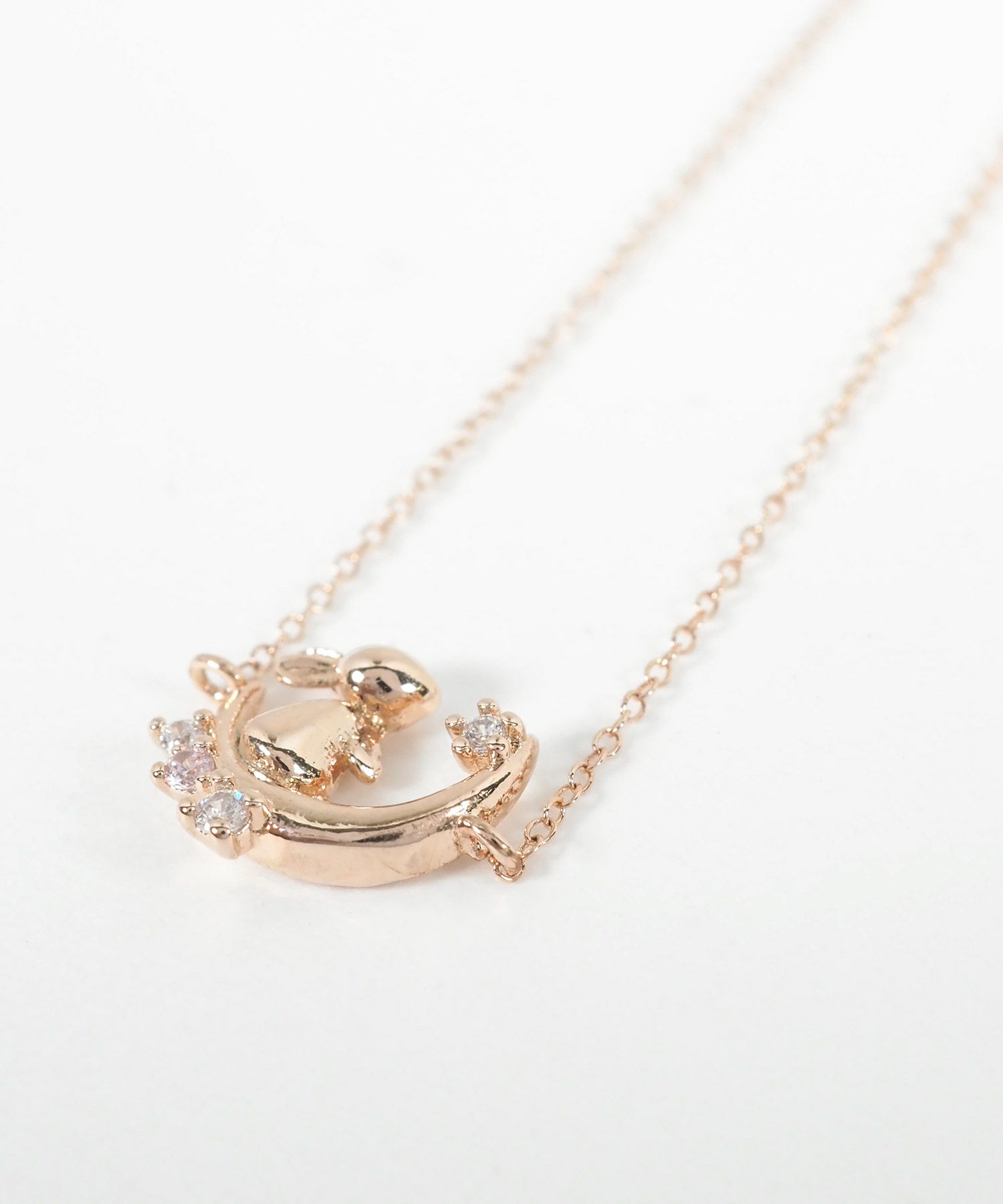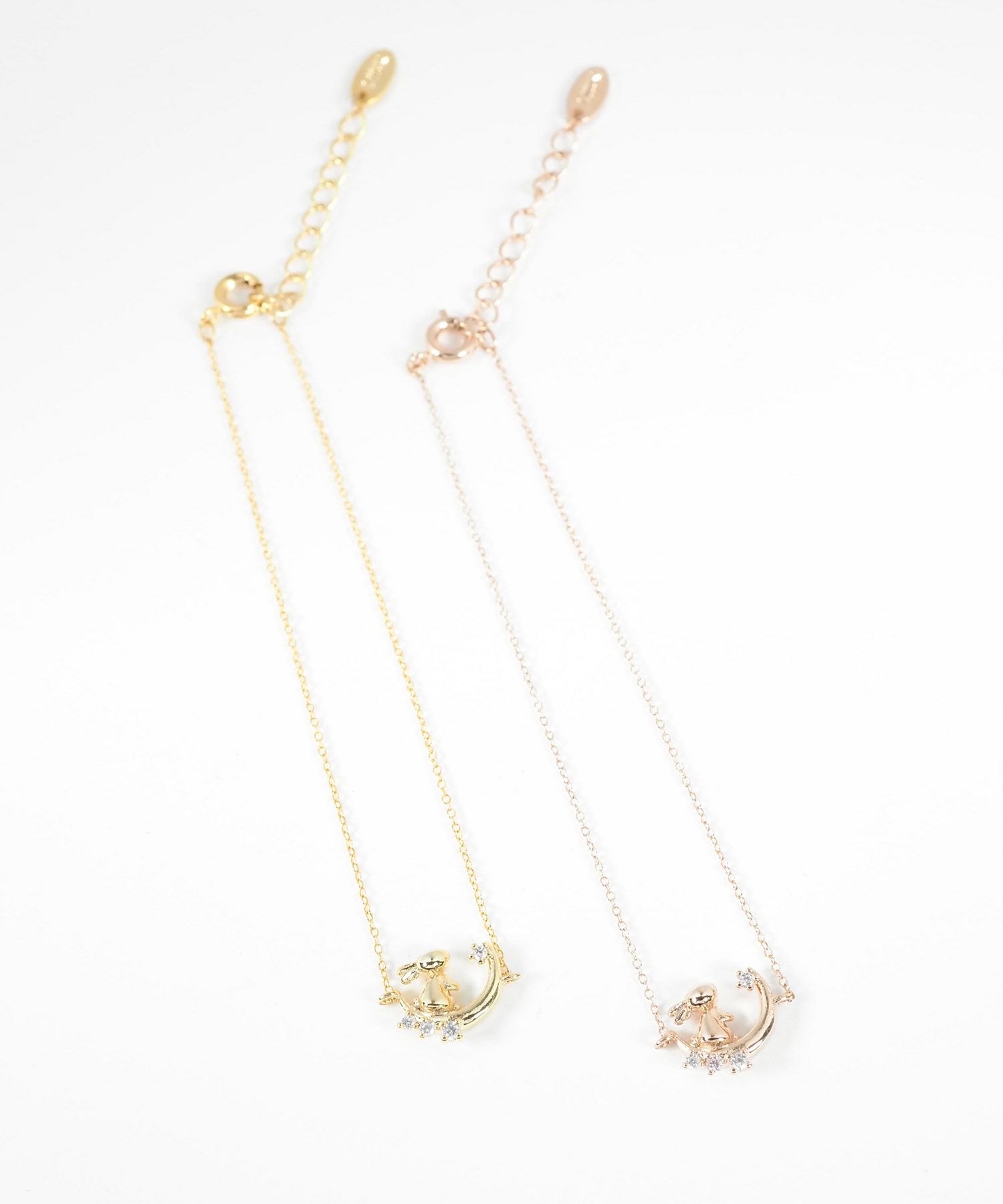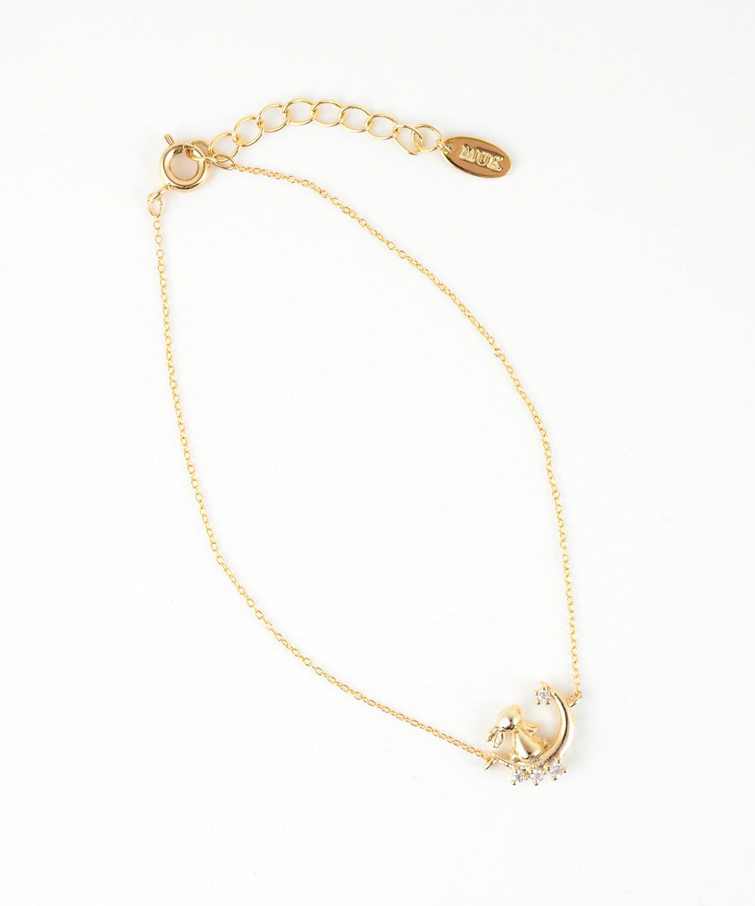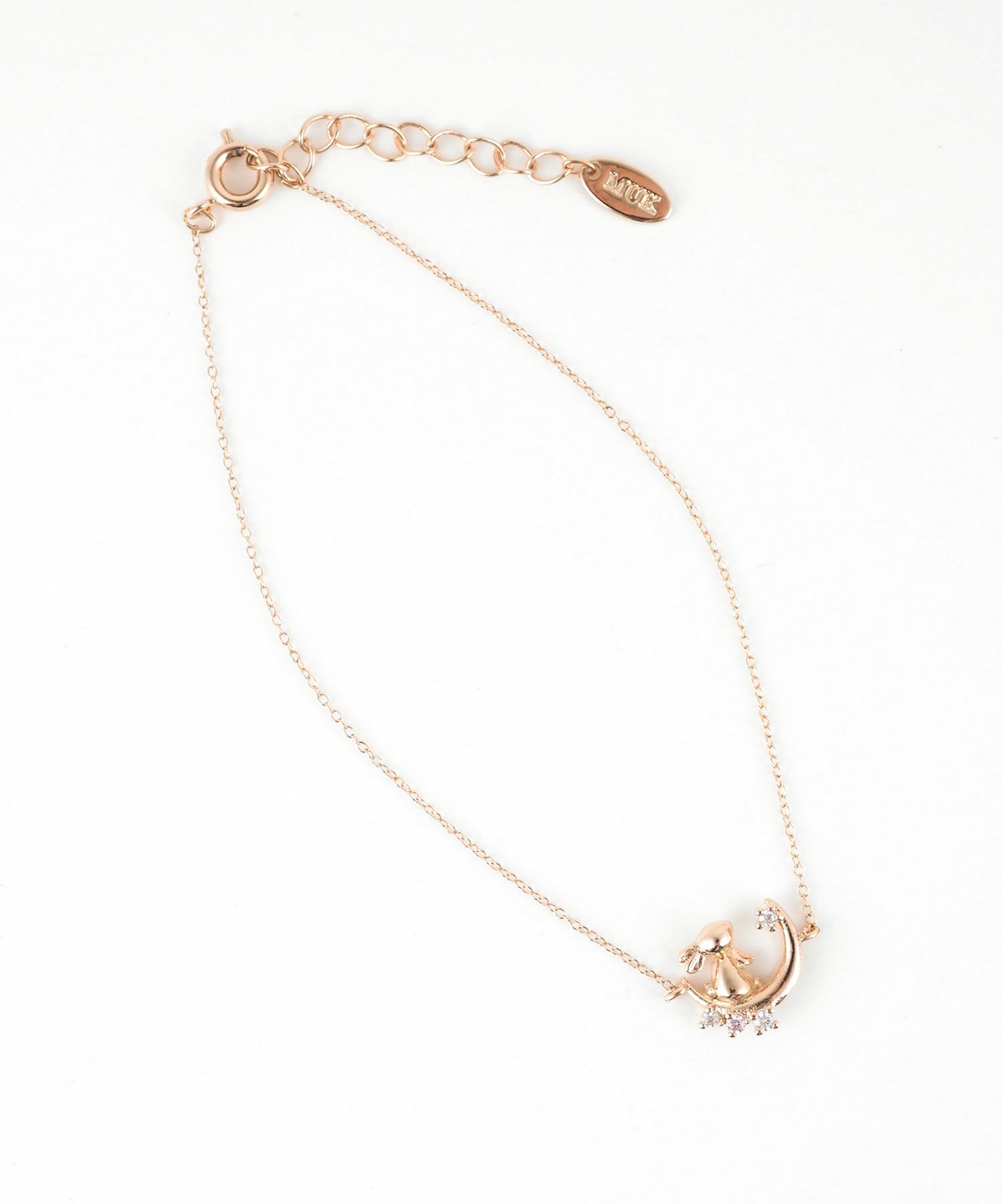 秋らしいモチーフのアクセサリーをご用意いたしました。月に乗ったうさぎのシルエットが愛らしいブレスレット。三日月に添えられたキュービックジルコニアがさりげなくきらめきます。