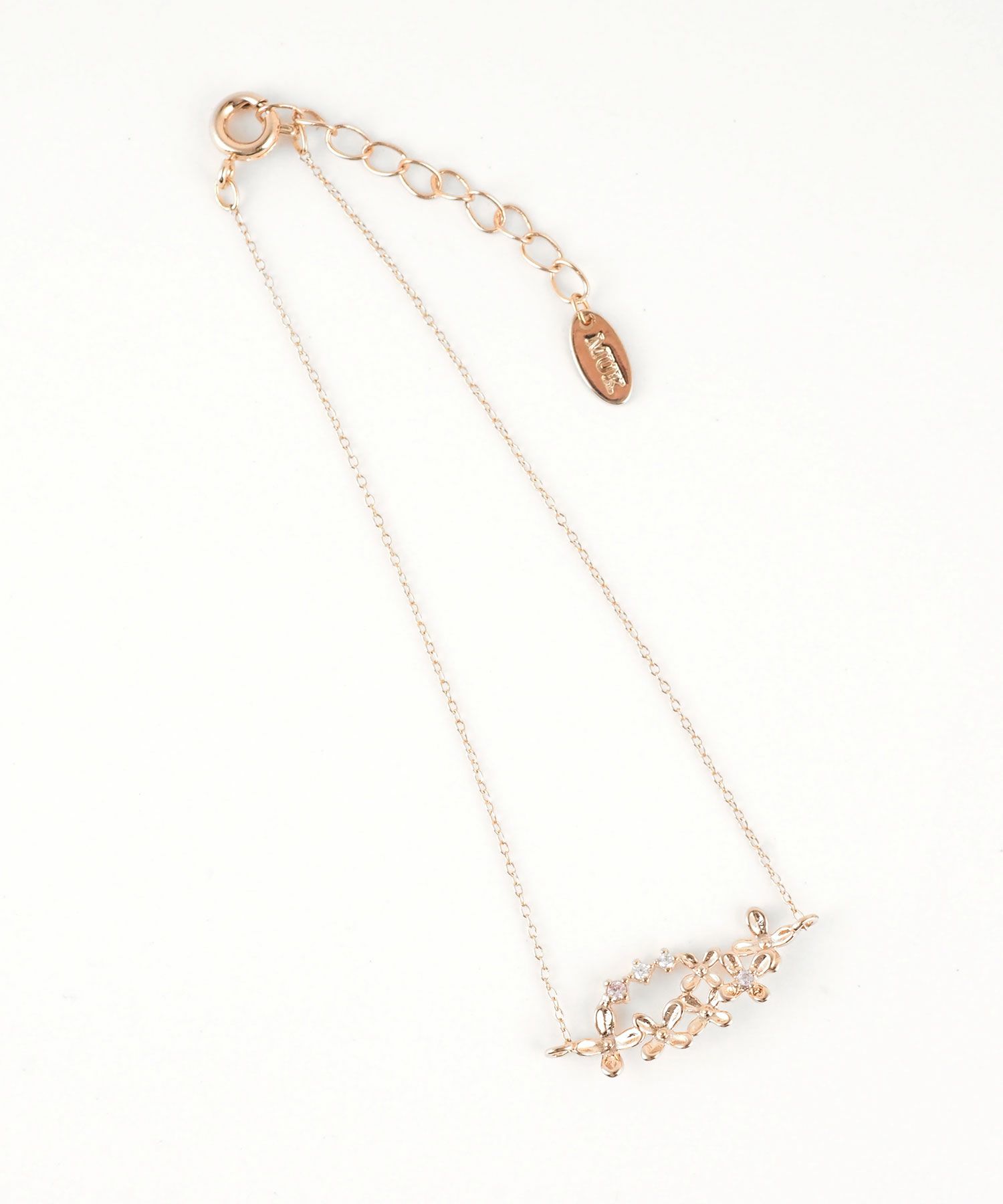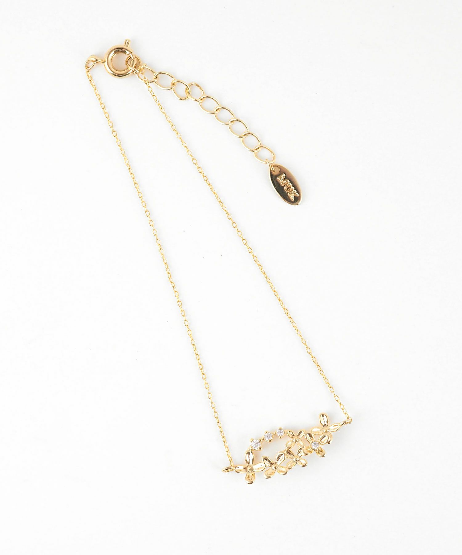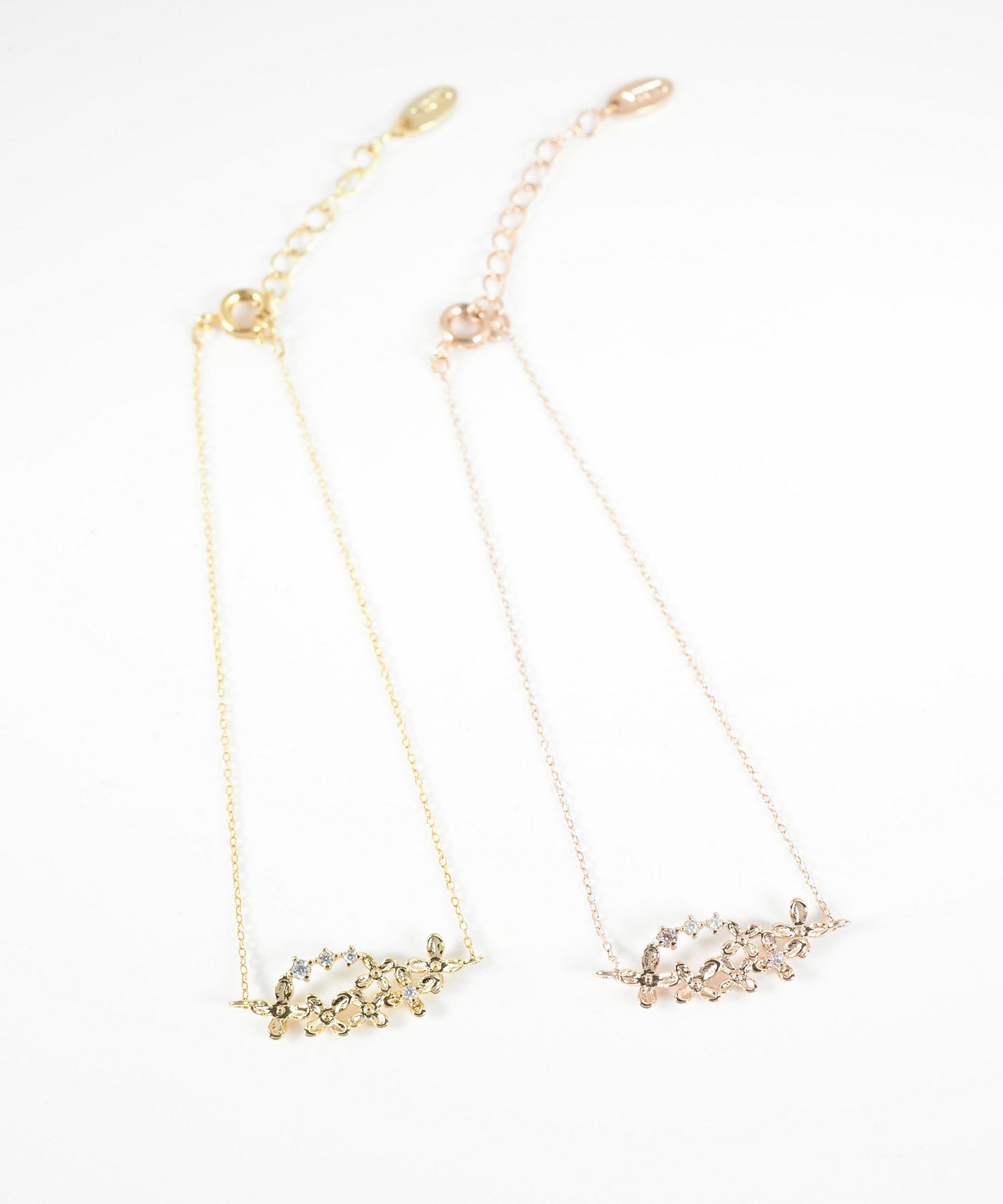 秋らしいモチーフのアクセサリーをご用意いたしました。手元に咲いた金木犀が可愛らしいブレスレット。お花に添えられたキュービックジルコニアがさりげなくきらめきます。