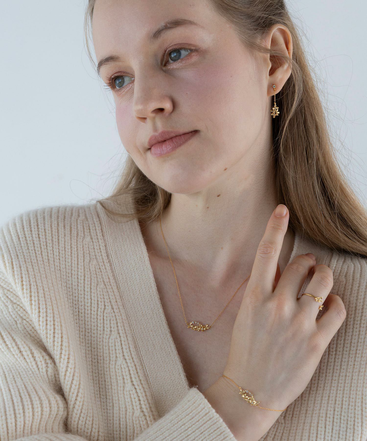 植物やかわいらしいフラワーモチーフをメインに、華奢でキュートなデザインから色鮮やかでクラフト感のあるアクセサリーまで、気分が上がるアクセサリーを幅広くご提案します。