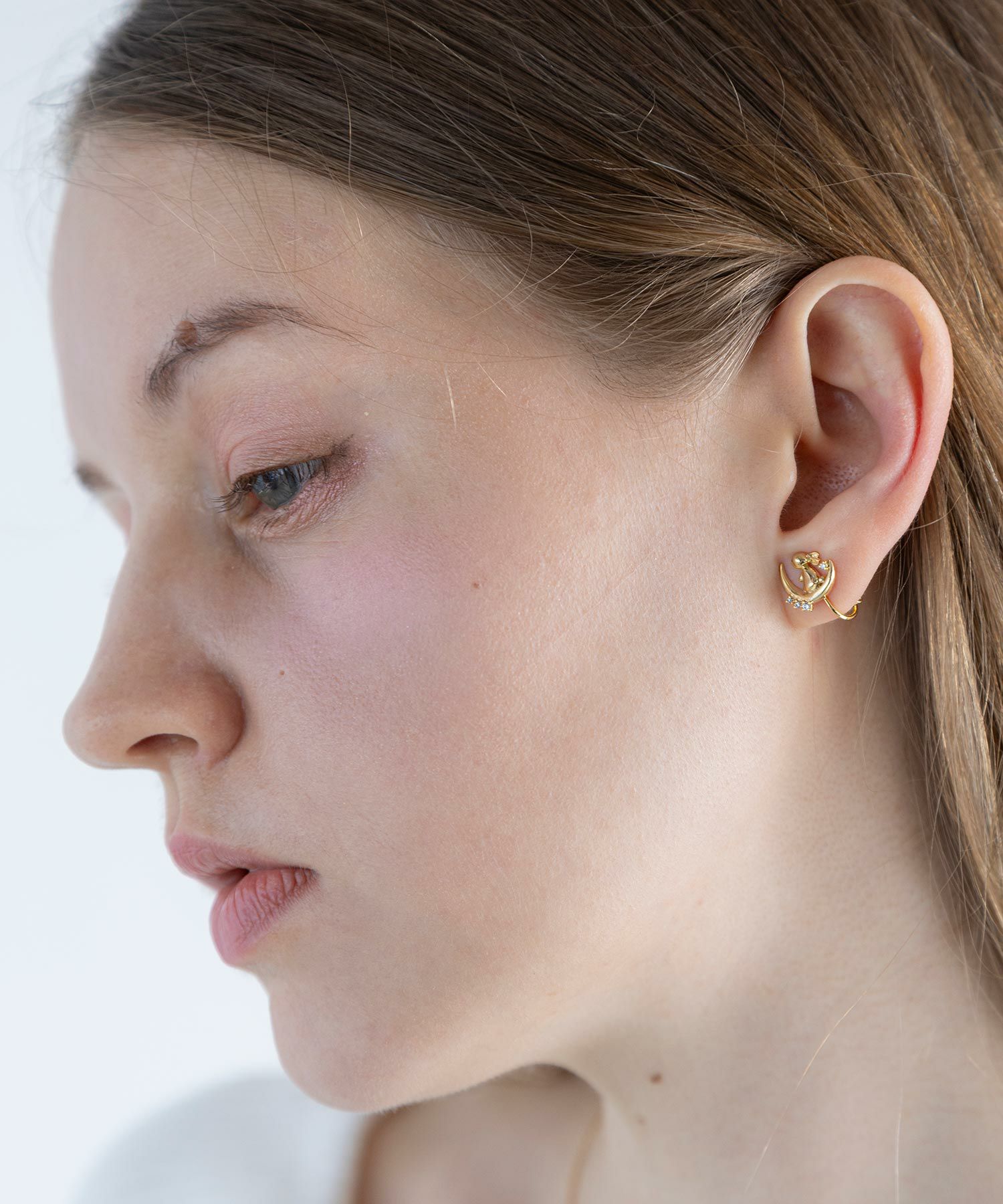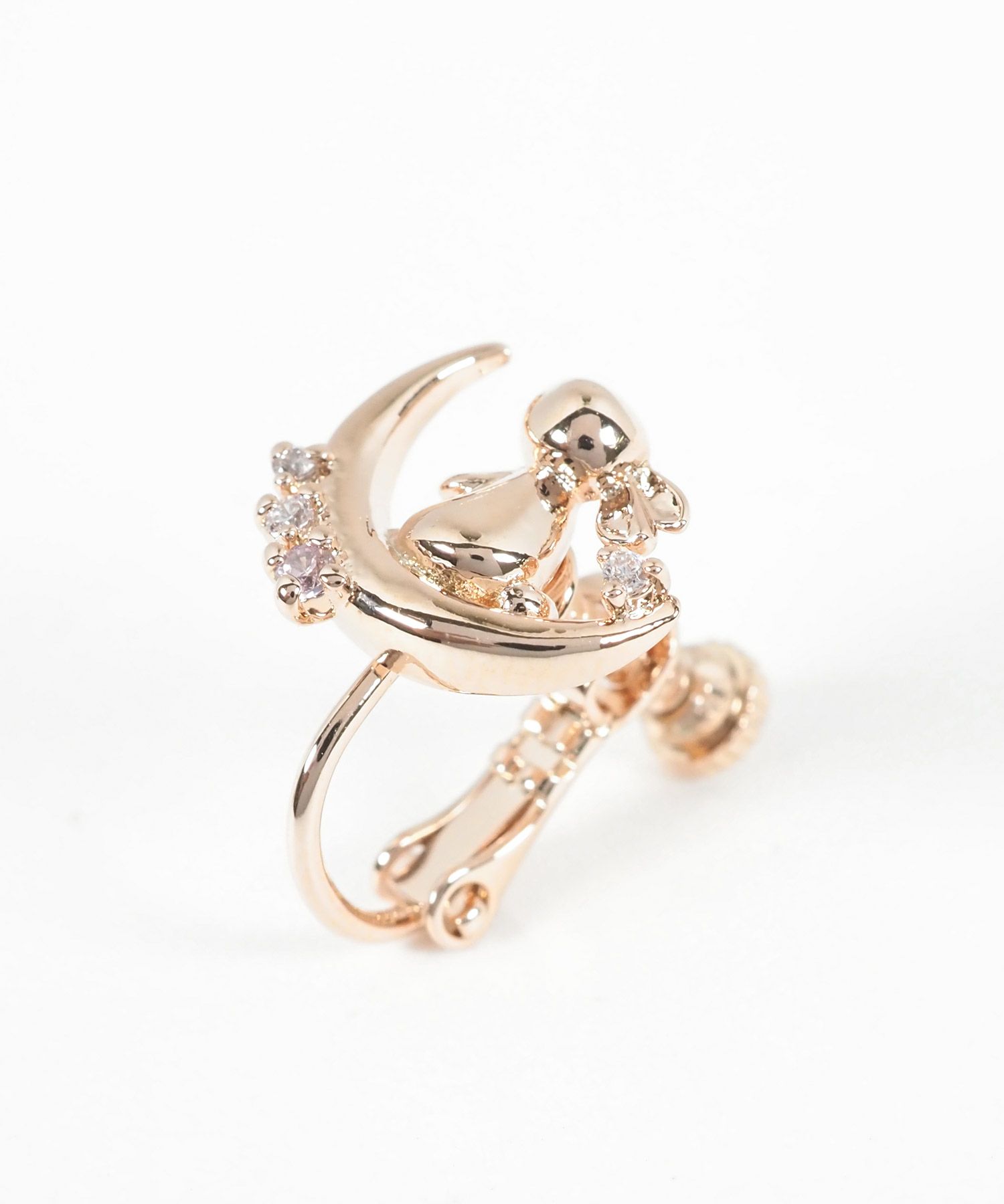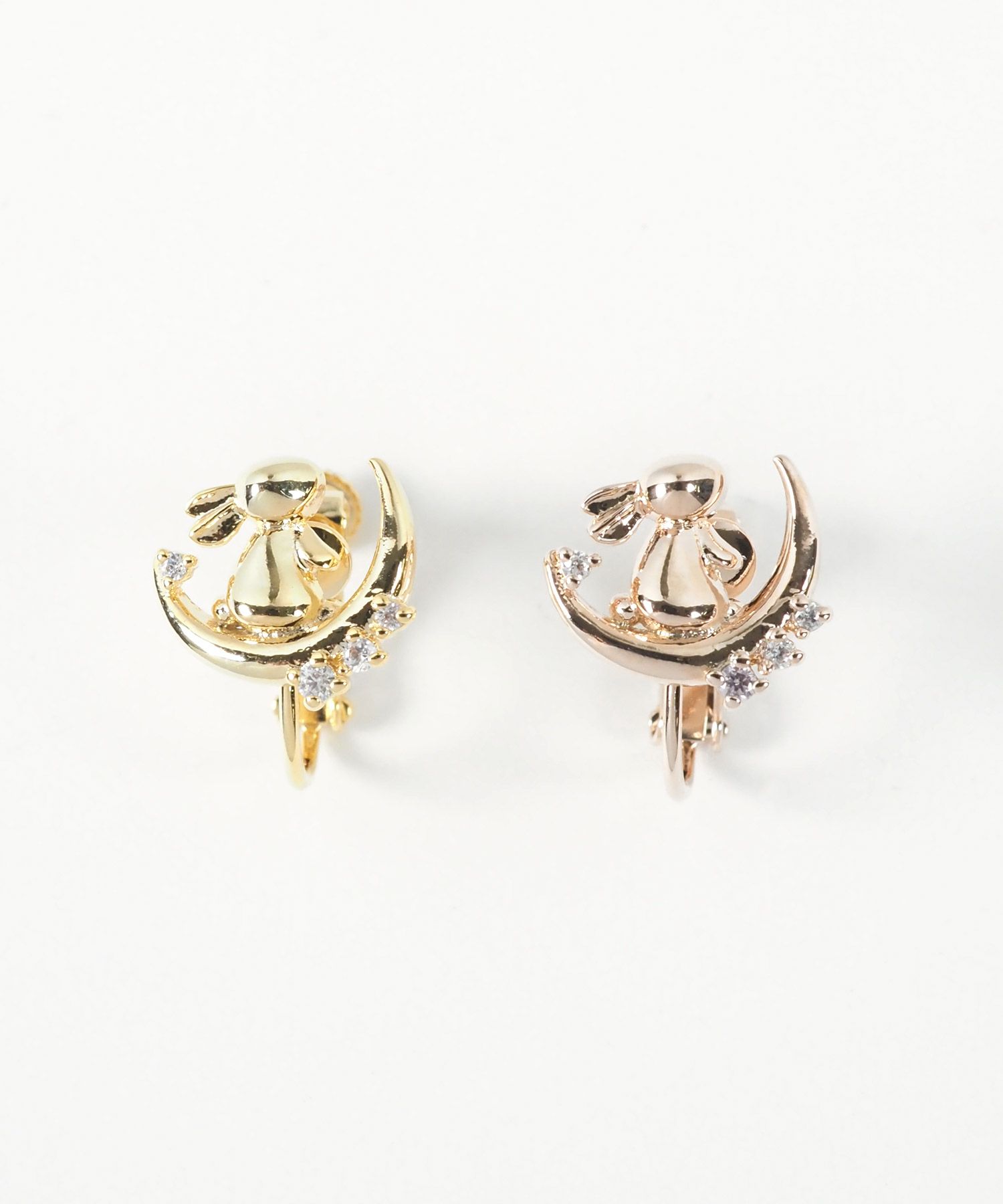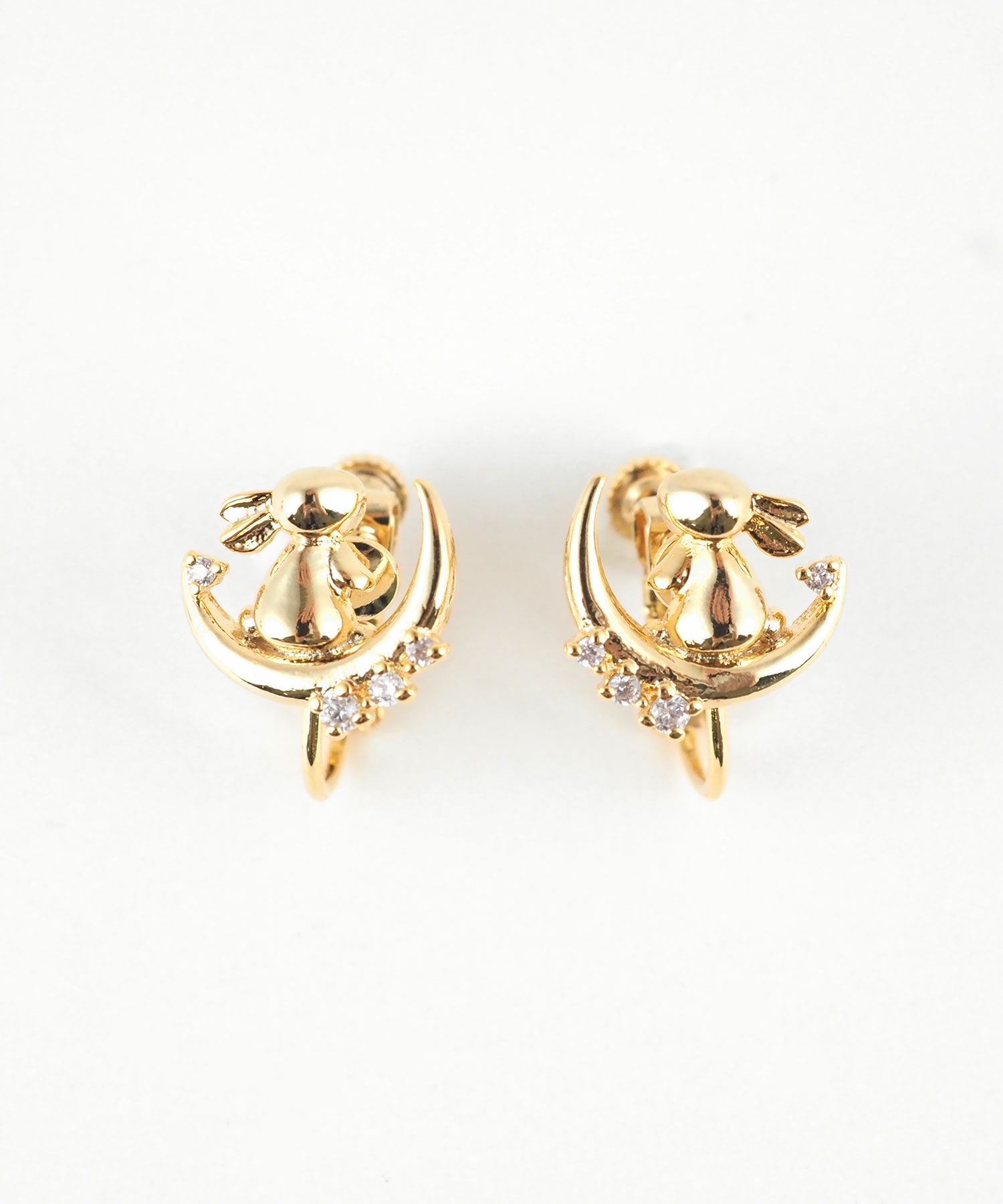 秋らしいモチーフのアクセサリーをご用意いたしました。月に乗ったうさぎのシルエットが愛らしいイヤリング。三日月に添えられたキュービックジルコニアがさりげなくきらめきます。