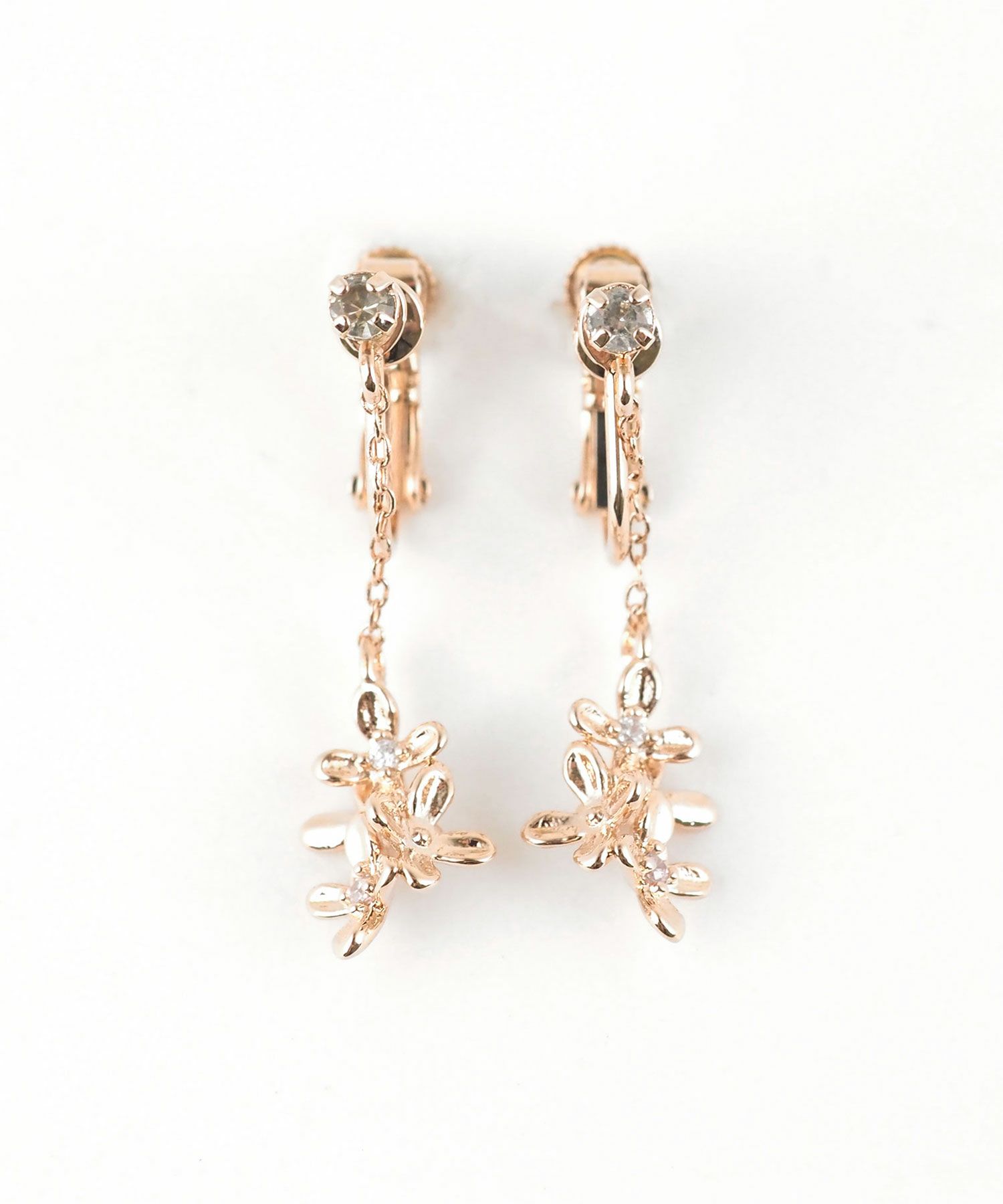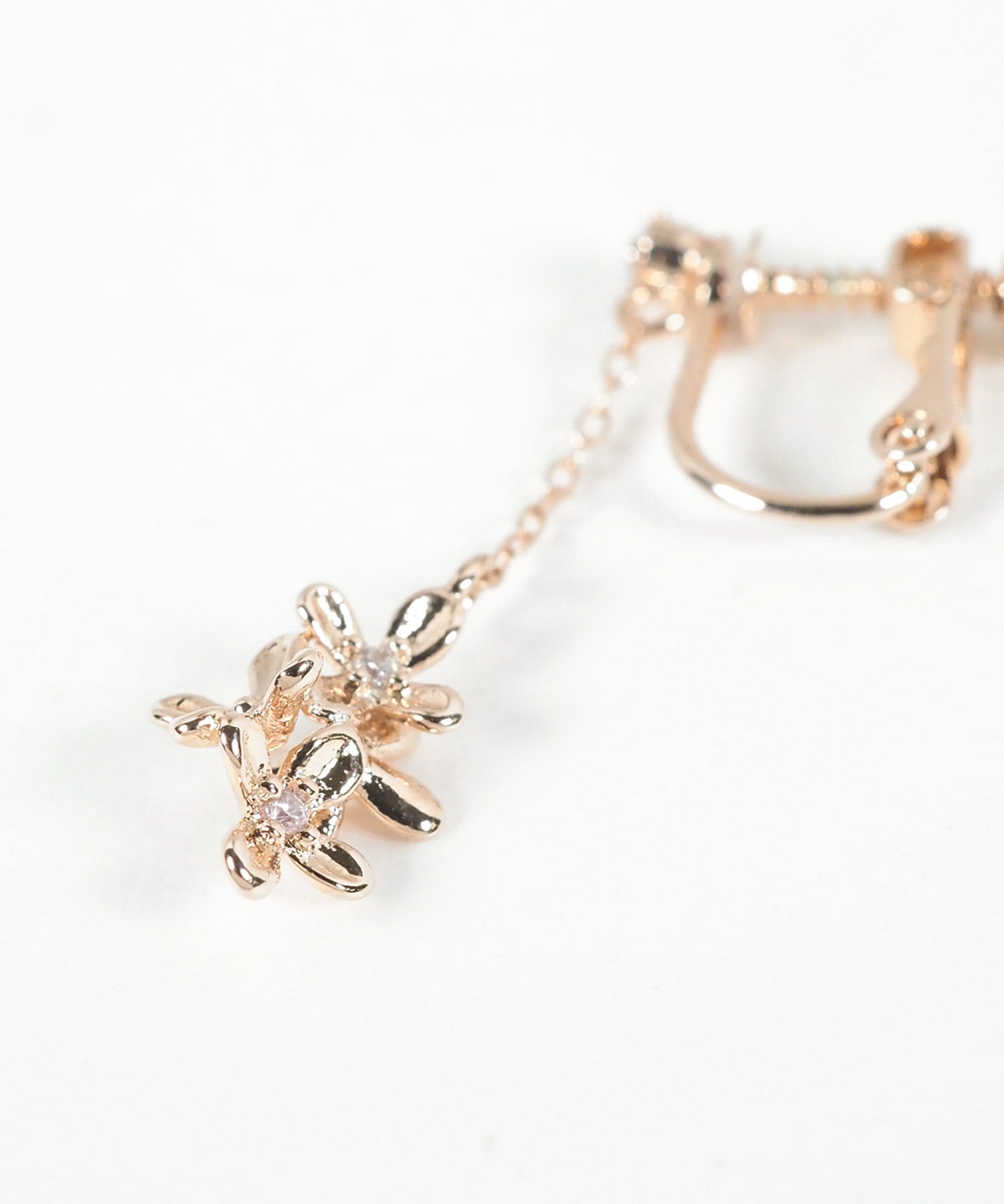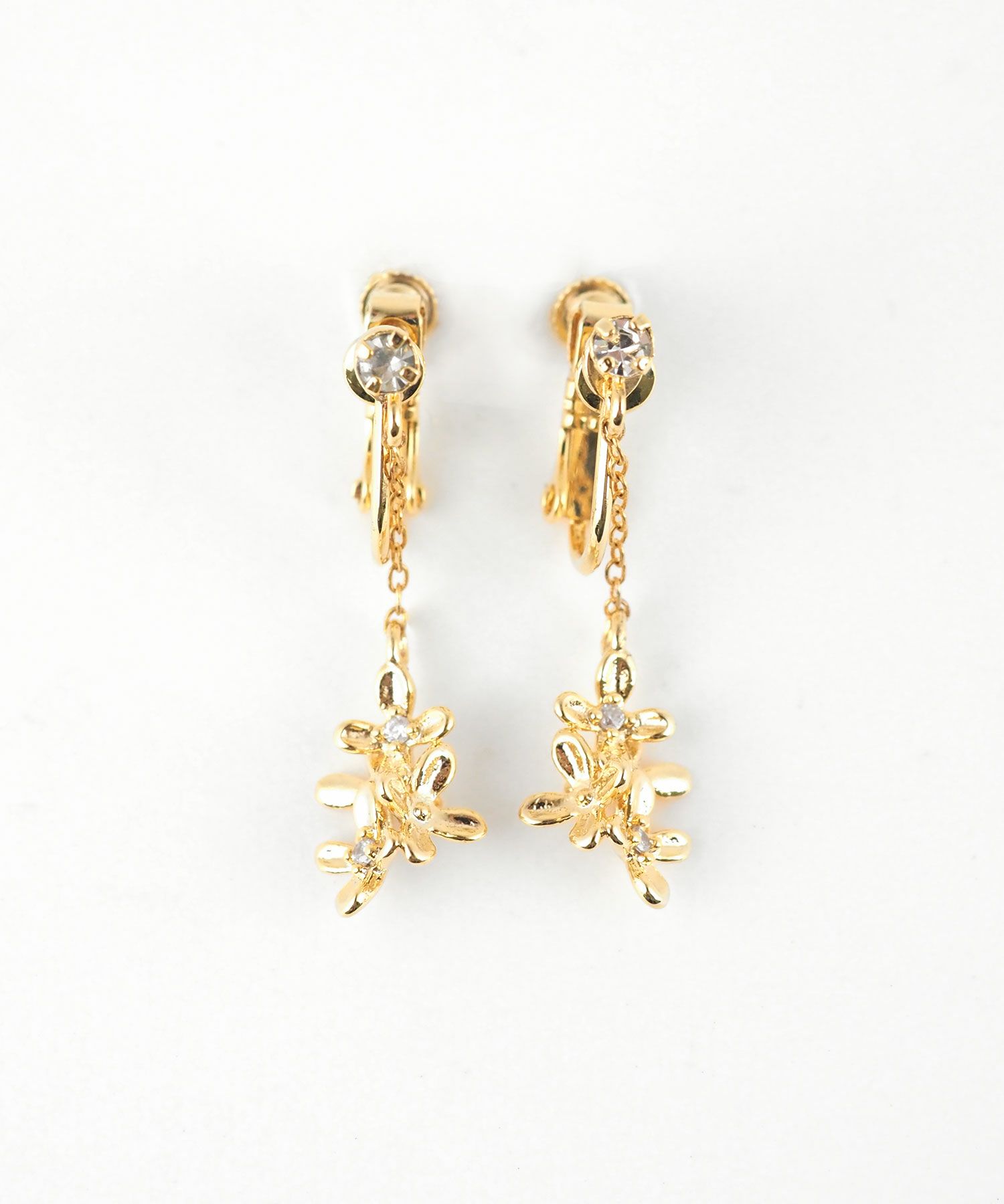 秋らしいモチーフのアクセサリーをご用意いたしました。耳元で揺れる金木犀が可愛らしいイヤリング。お花に添えられたキュービックジルコニアがさりげなくきらめきます。