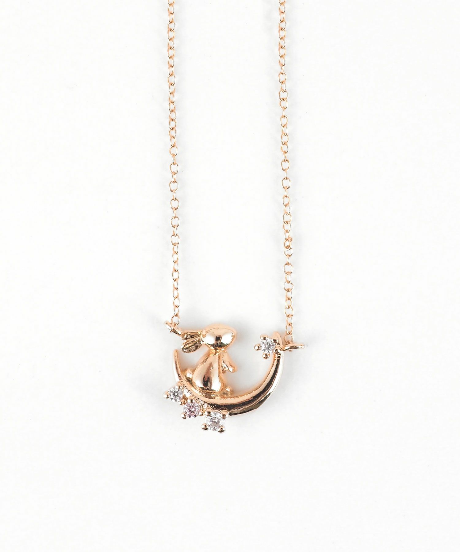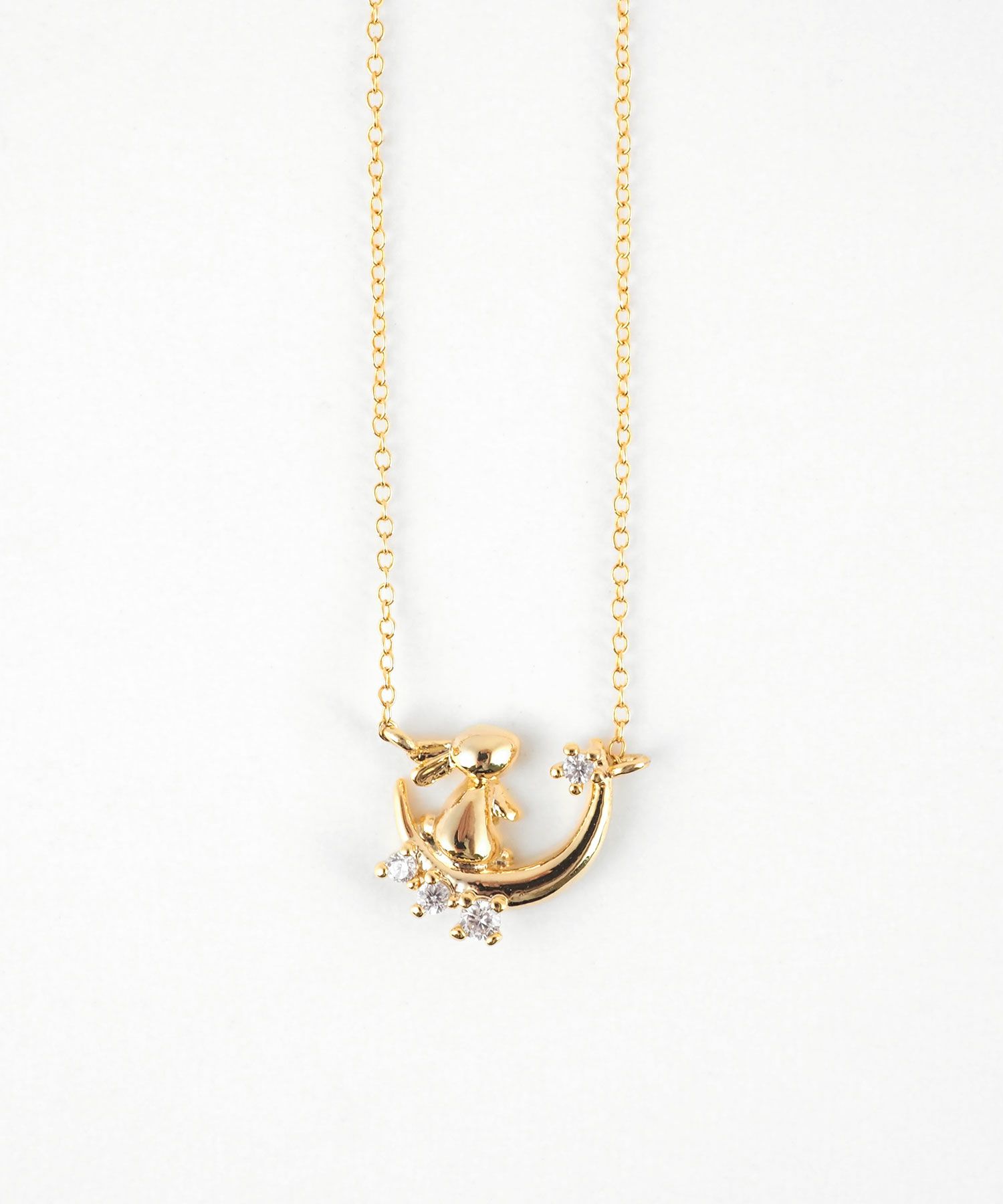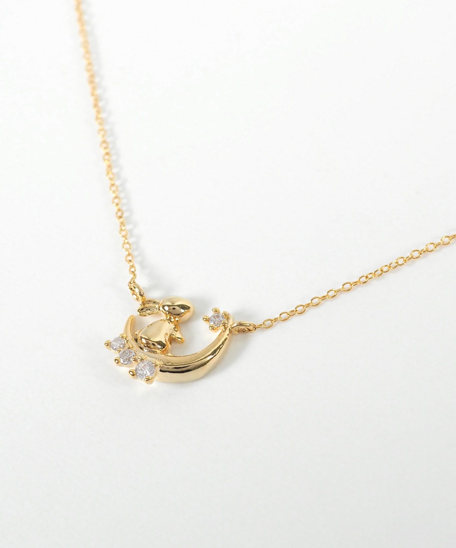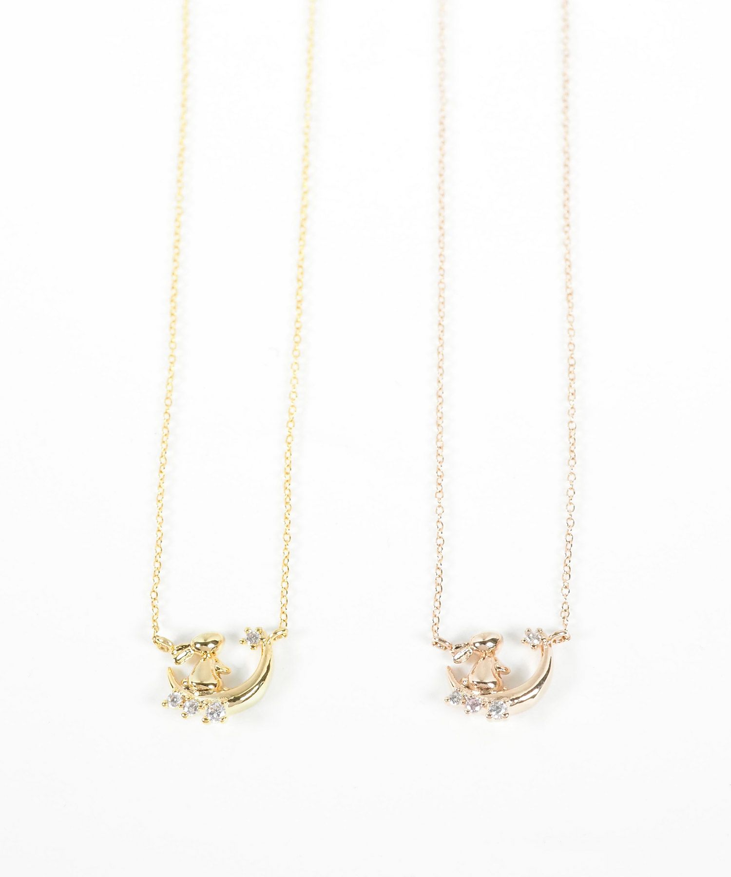 秋らしいモチーフのアクセサリーをご用意いたしました。月に乗ったうさぎのシルエットが愛らしいネックレス。三日月に添えられたキュービックジルコニアがさりげなくきらめきます。