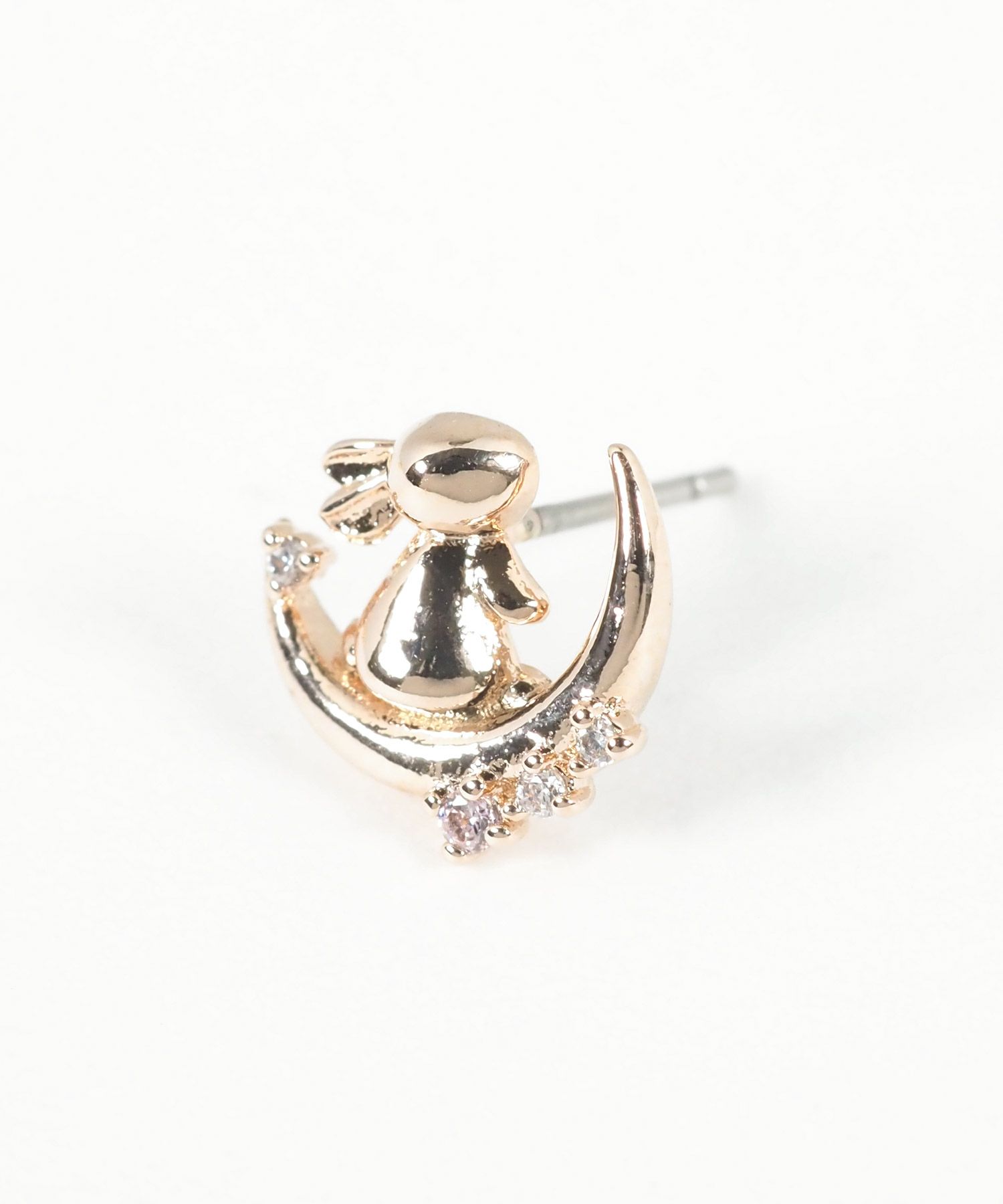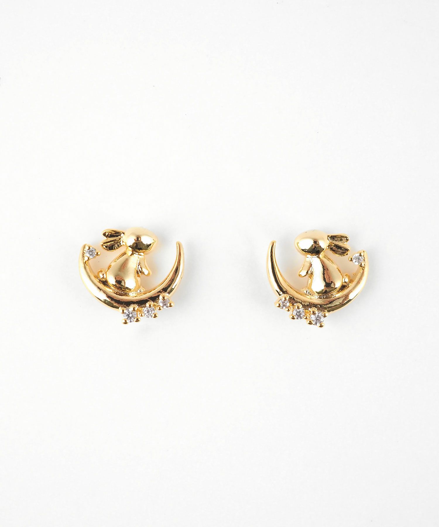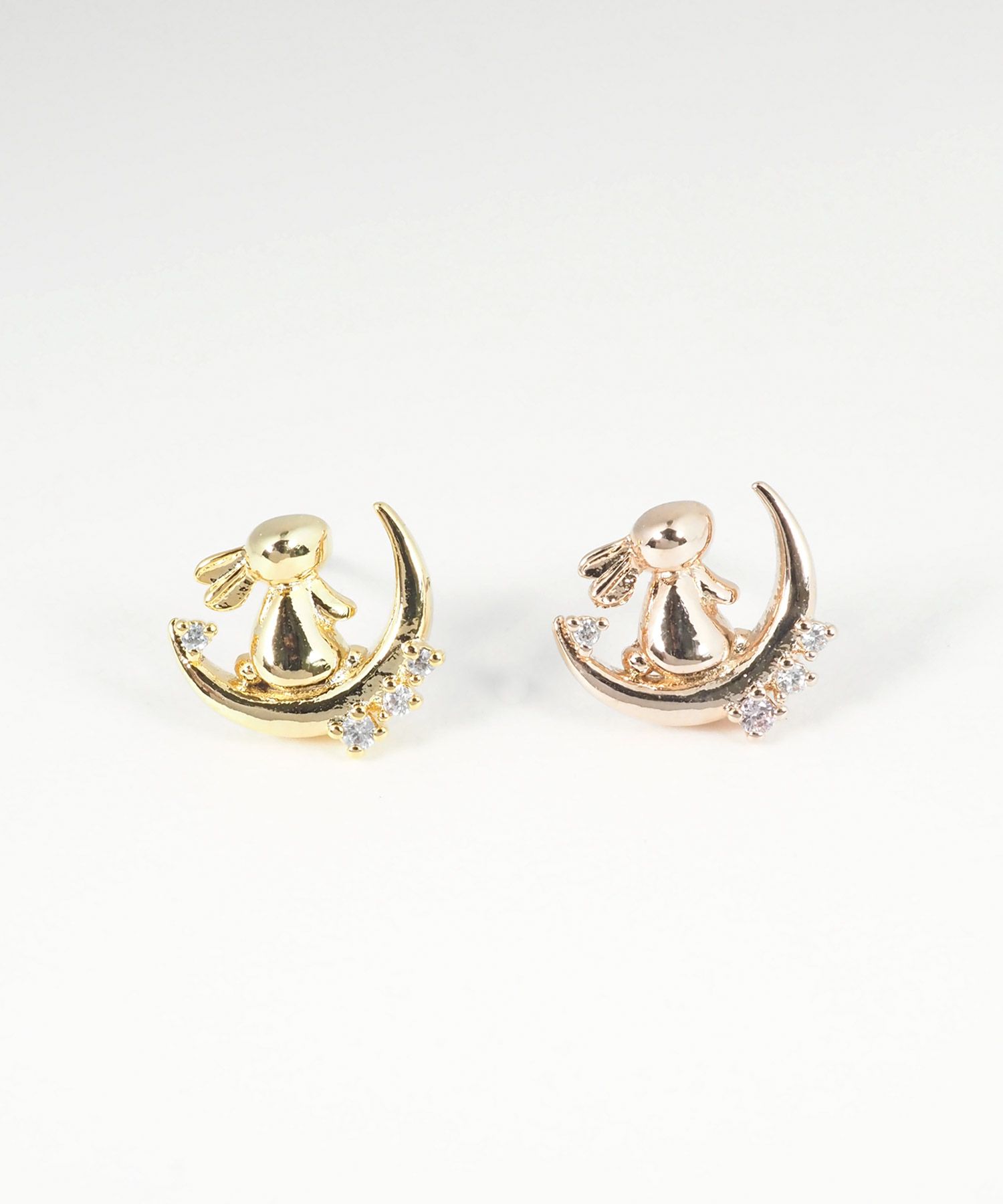 秋らしいモチーフのアクセサリーをご用意いたしました。月に乗ったうさぎのシルエットが愛らしいピアス。三日月に添えられたキュービックジルコニアがさりげなくきらめきます。ペアピアス(両耳用)です。