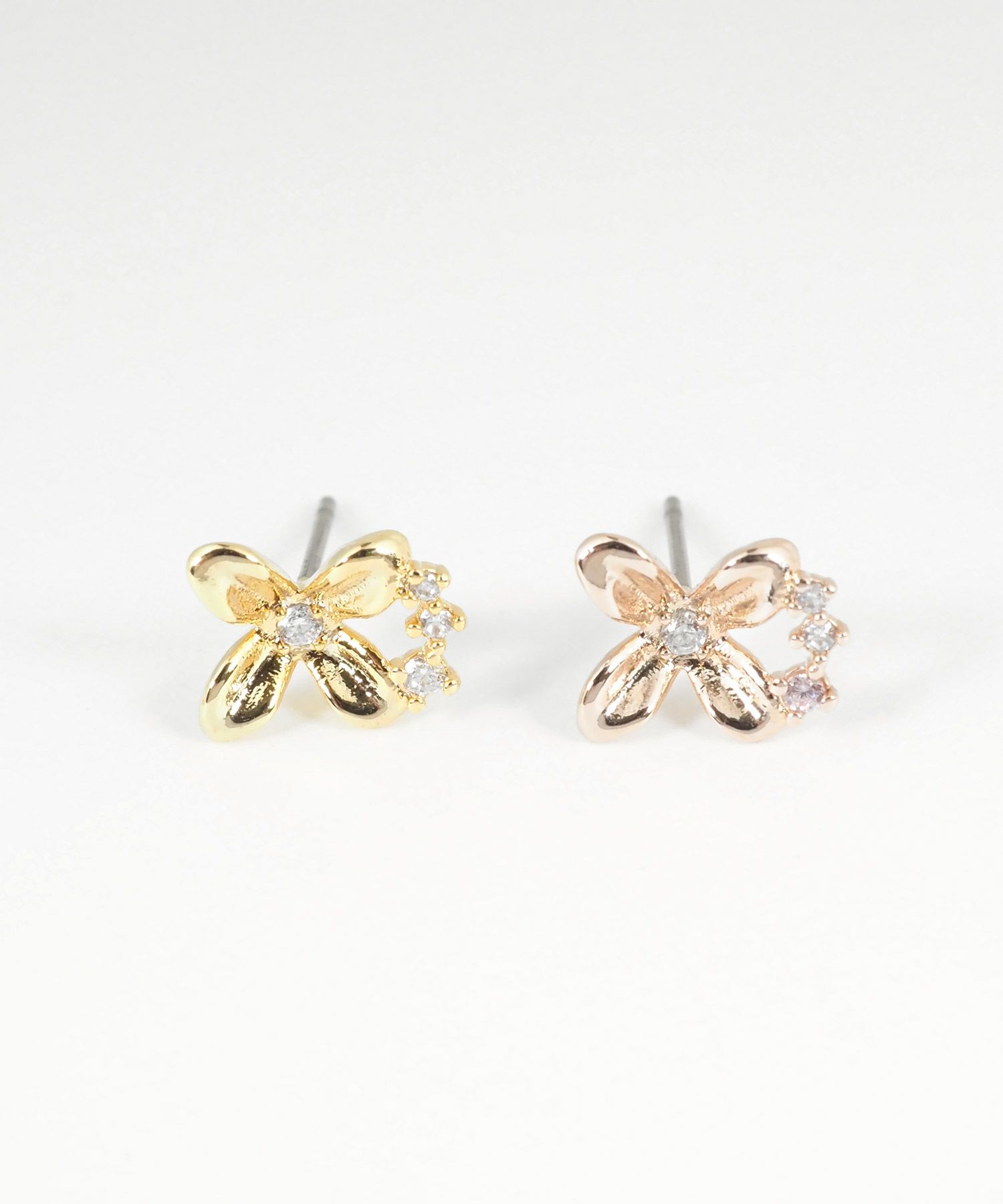 秋らしいモチーフのアクセサリーをご用意いたしました。耳元に咲いた金木犀が可愛らしいピアス。お花に添えられたキュービックジルコニアがさりげなくきらめきます。ペアピアス(両耳用)です。