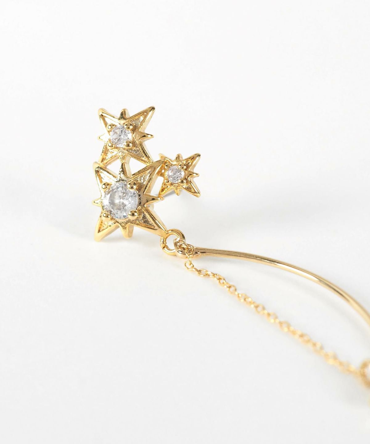 星や月をイメージしたモチーフのシリーズです。 耳元で煌めく星々が華やかなピアス。揺れるモチーフが上品な印象をプラスします。ペアピアス(両耳用)です。