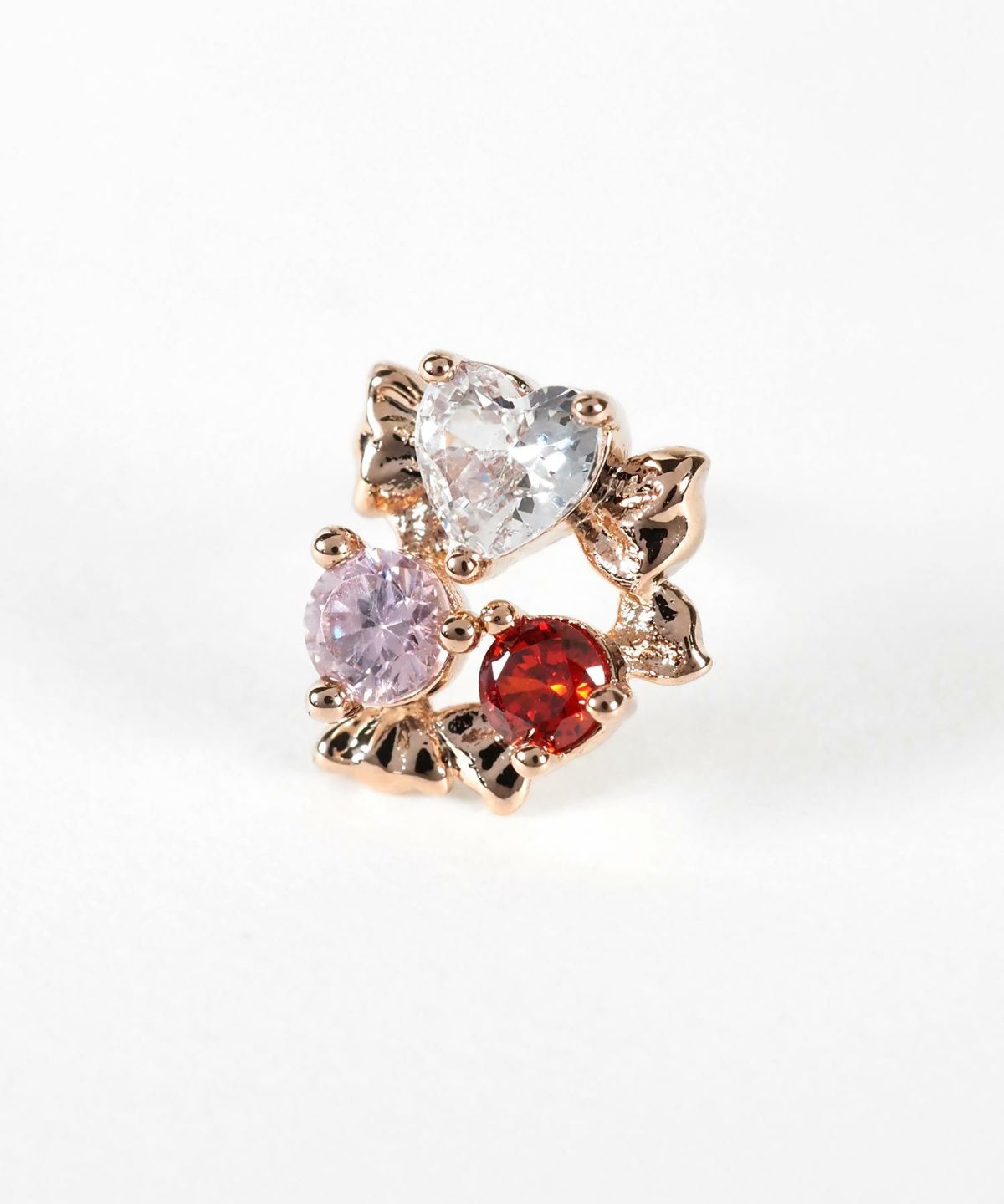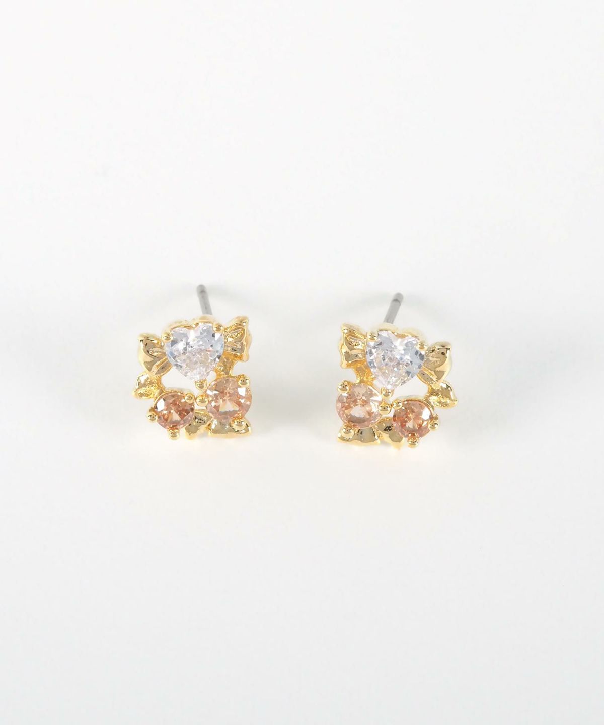 煌めくハートとリボンのモチーフがフェミニンで可愛らしいピアス。 シャディソフィーらしいキュートな印象のシリーズです。ペアピアス(両耳用)です。