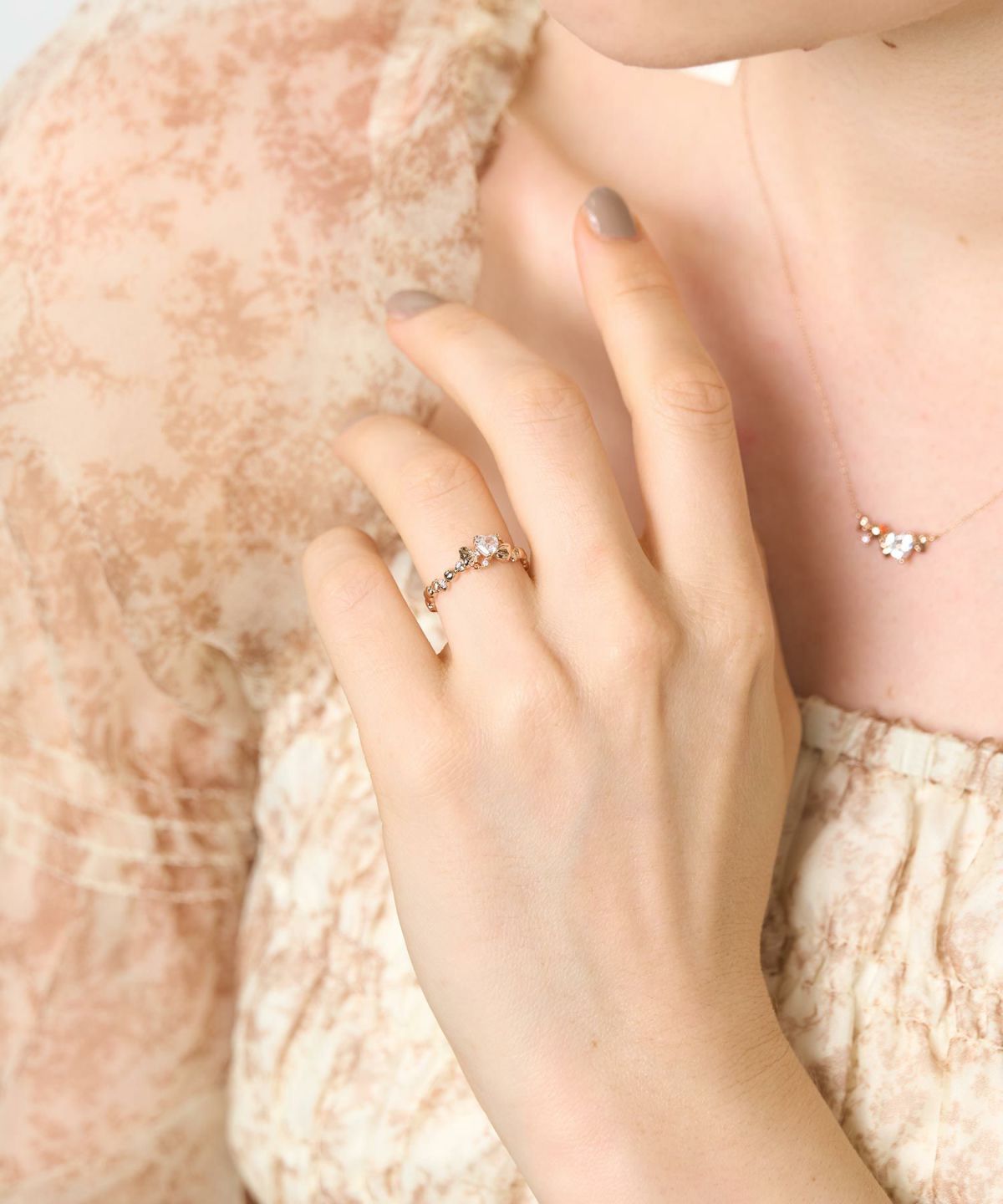 煌めくハートとリボンのモチーフがフェミニンで可愛らしいリング。 シャディソフィーらしいキュートな印象のシリーズです。