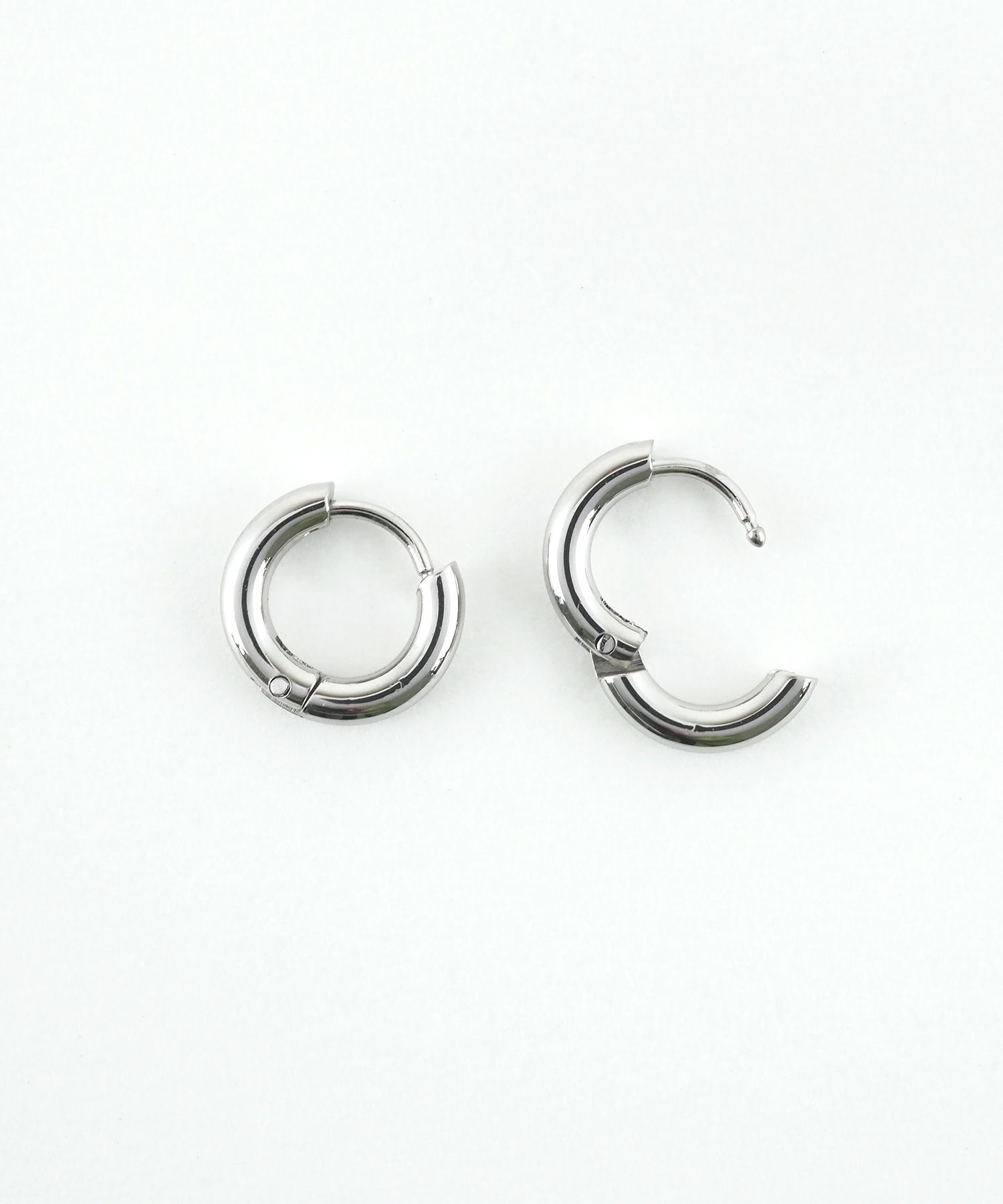 スリムなメタルフープがシンプルなコーデに映えるステンレスピアス。オフィス、カジュアル、フォーマルなど、シーンを選ばず活躍します。カチッと閉めて固定ができ、着脱が簡単なワンタッチピアス。錆びにくく金属アレルギーの起こりにくいオールステンレスなのも嬉しいポイント。 ペアピアス(両耳用)です。