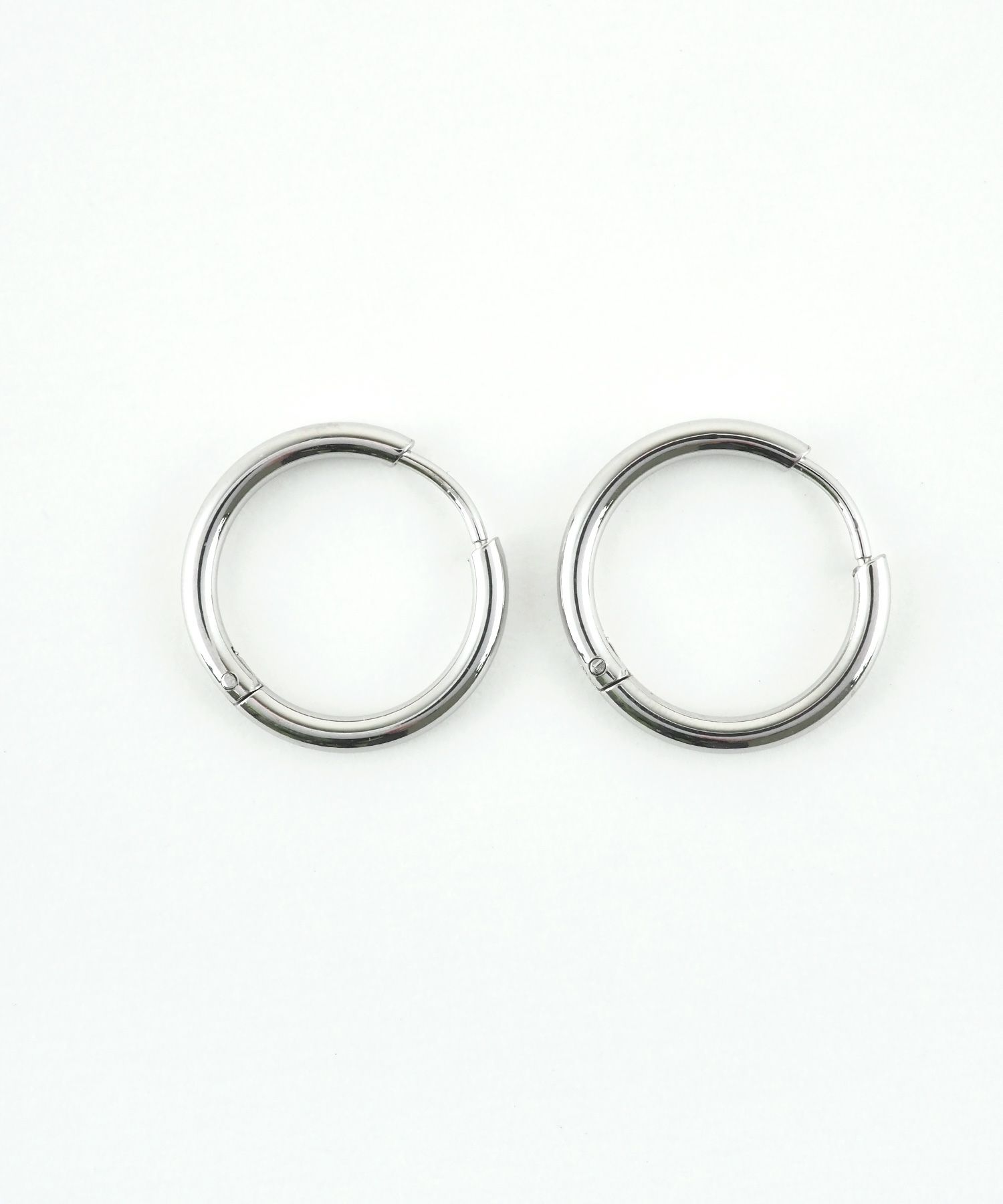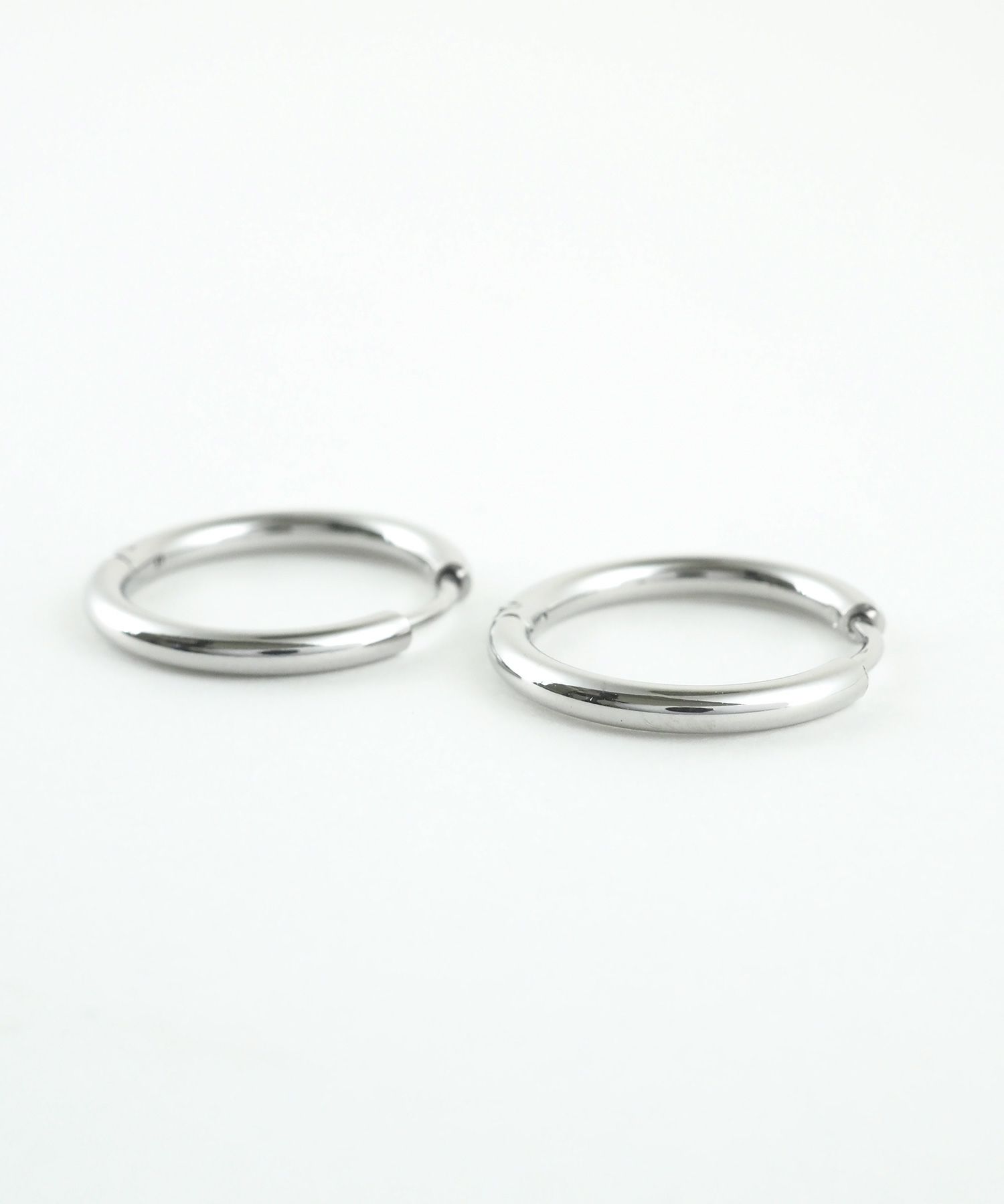 スリムなメタルフープがシンプルなコーデに映えるステンレスピアス。オフィス、カジュアル、フォーマルなど、シーンを選ばず活躍します。カチッと閉めて固定ができ、着脱が簡単なワンタッチピアス。錆びにくく金属アレルギーの起こりにくいオールステンレスなのも嬉しいポイント。 ペアピアス(両耳用)です。